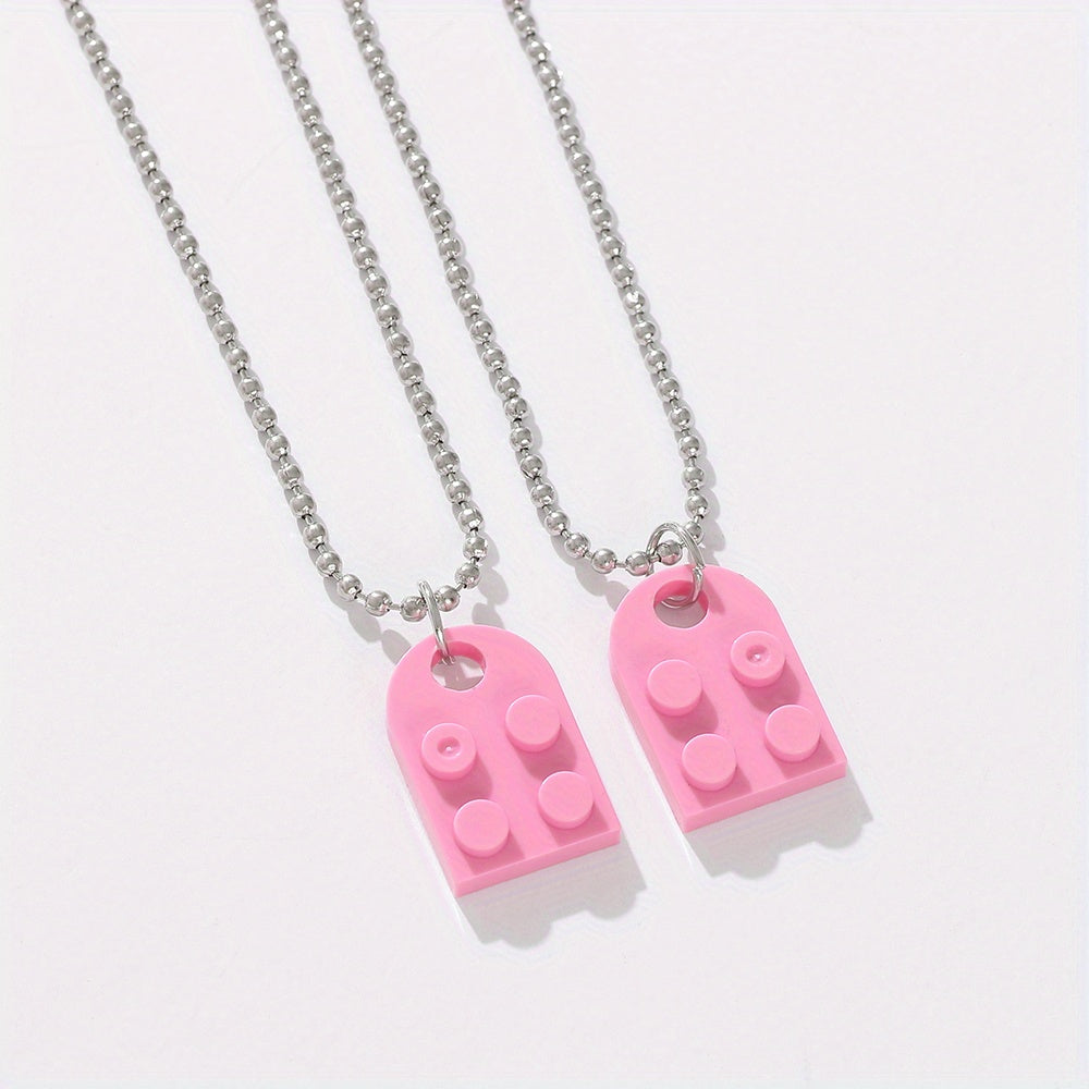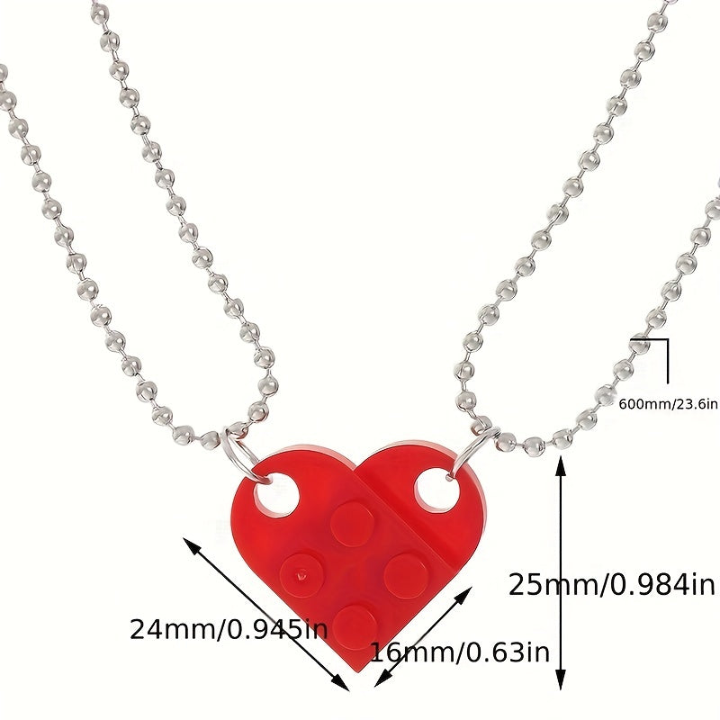 This set includes 2pcs of stylish necklace with heart stitching design. Made of high quality plastic building blocks, these necklaces are perfect for couples.