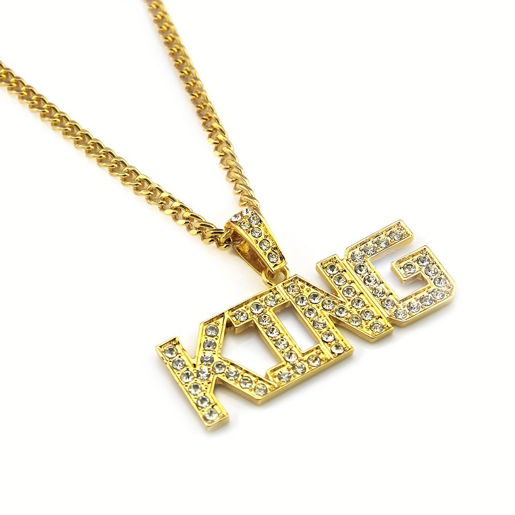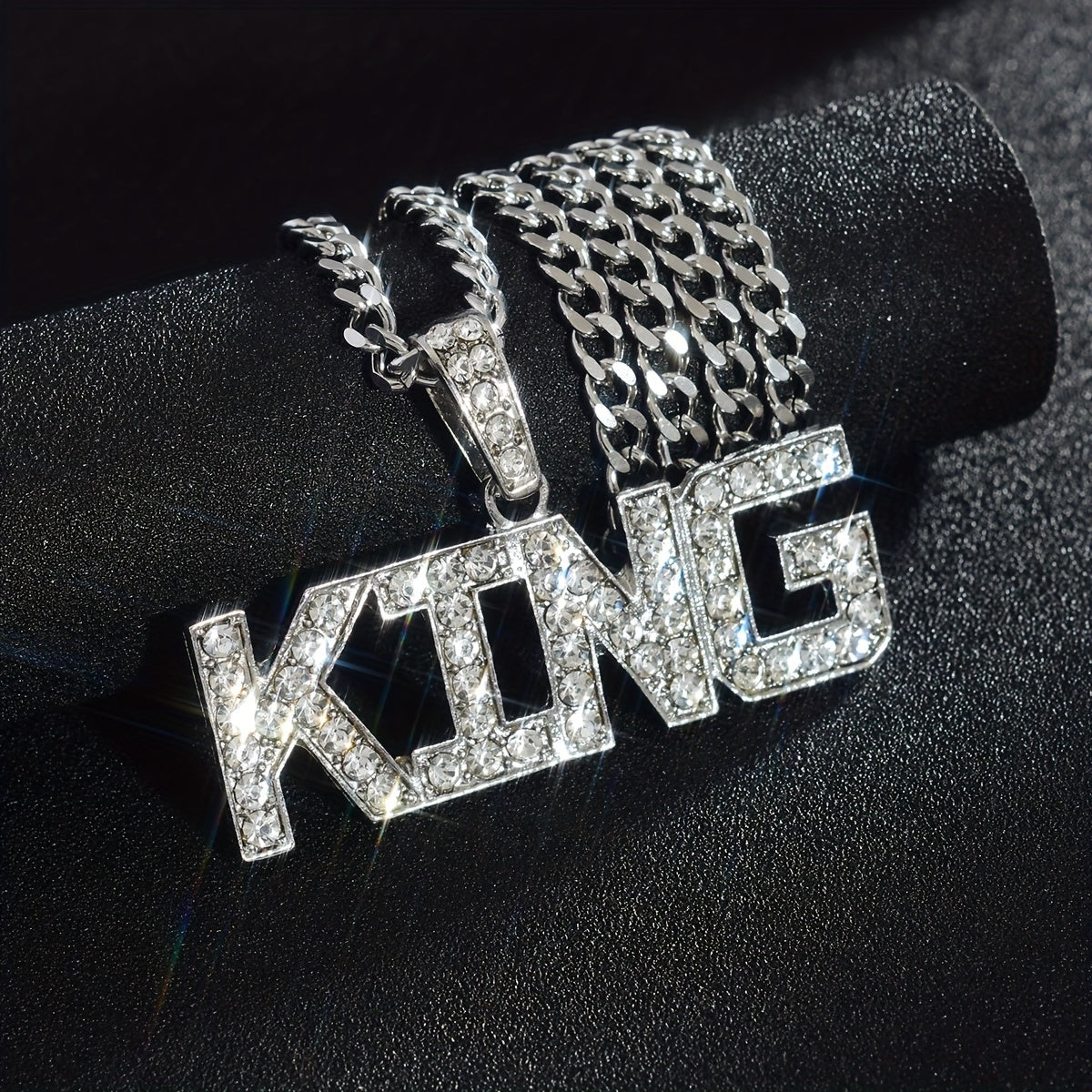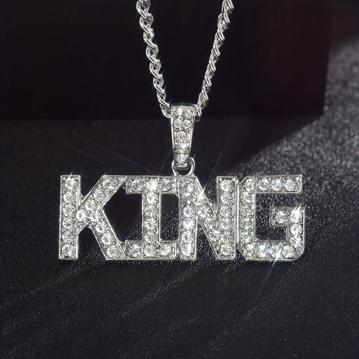 Add a touch of hip hop style with this King letter rhinestone necklace for men.