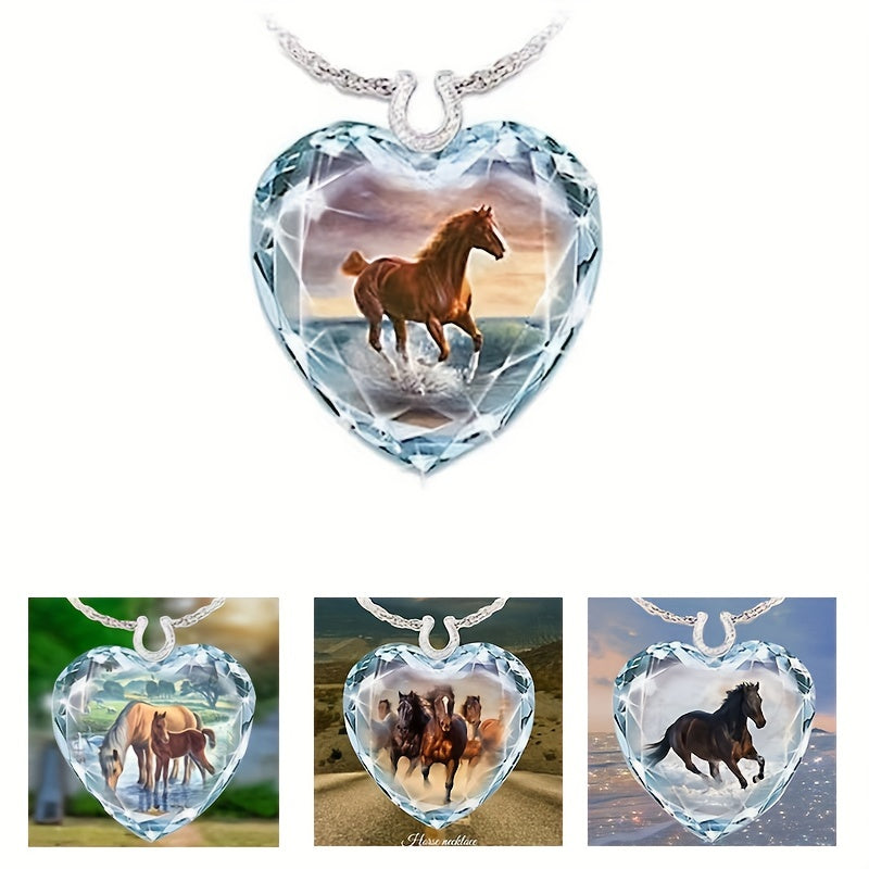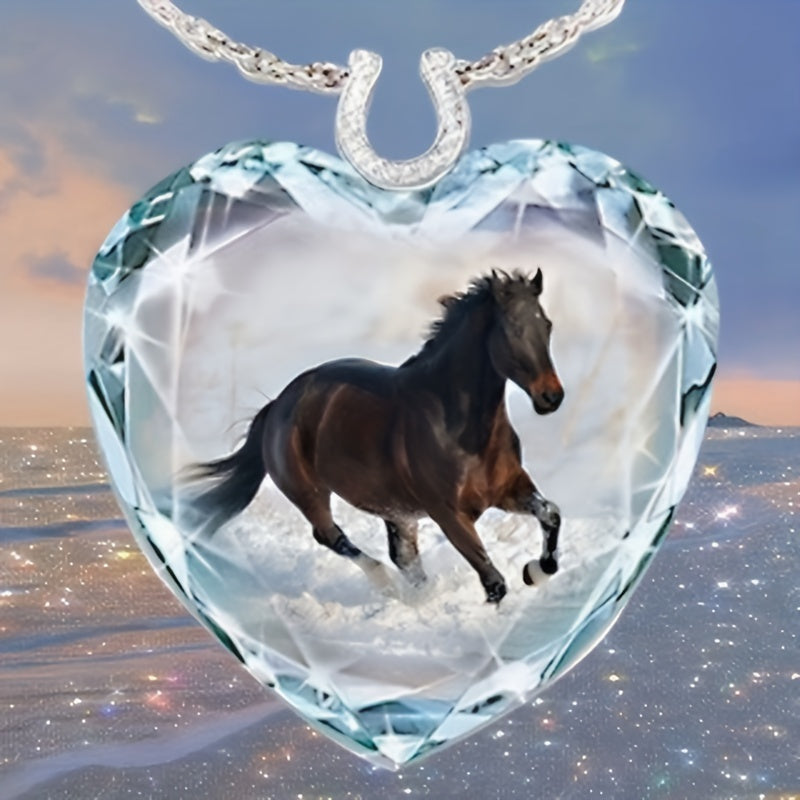 Enhance your style with this creative horse pendant necklace featuring artificial crystal. Part of the Crystal Necklace Series.