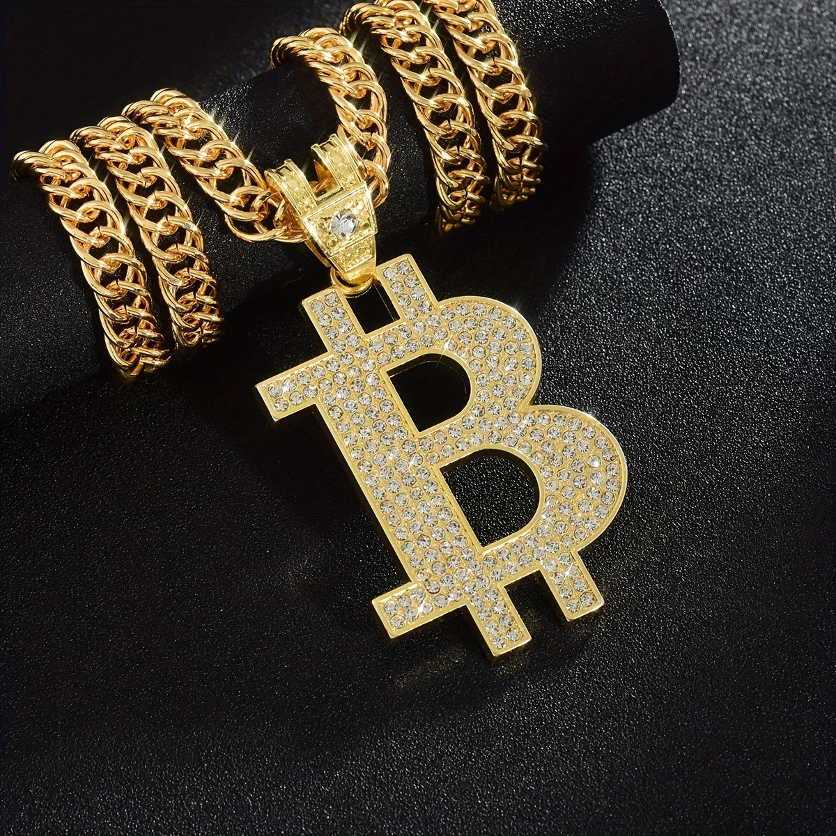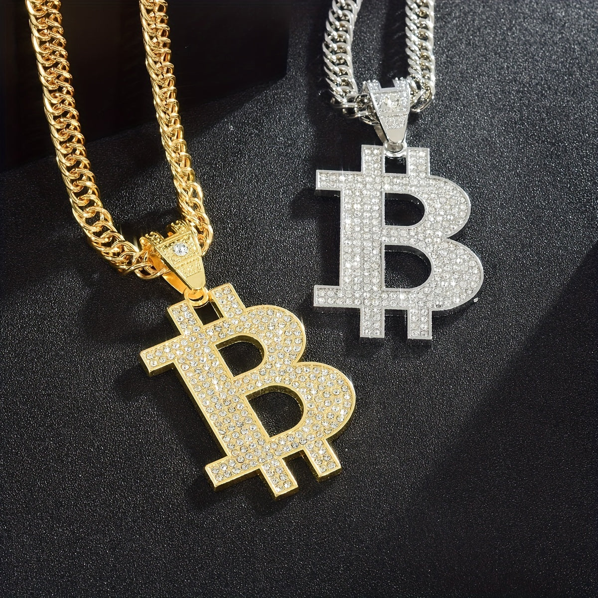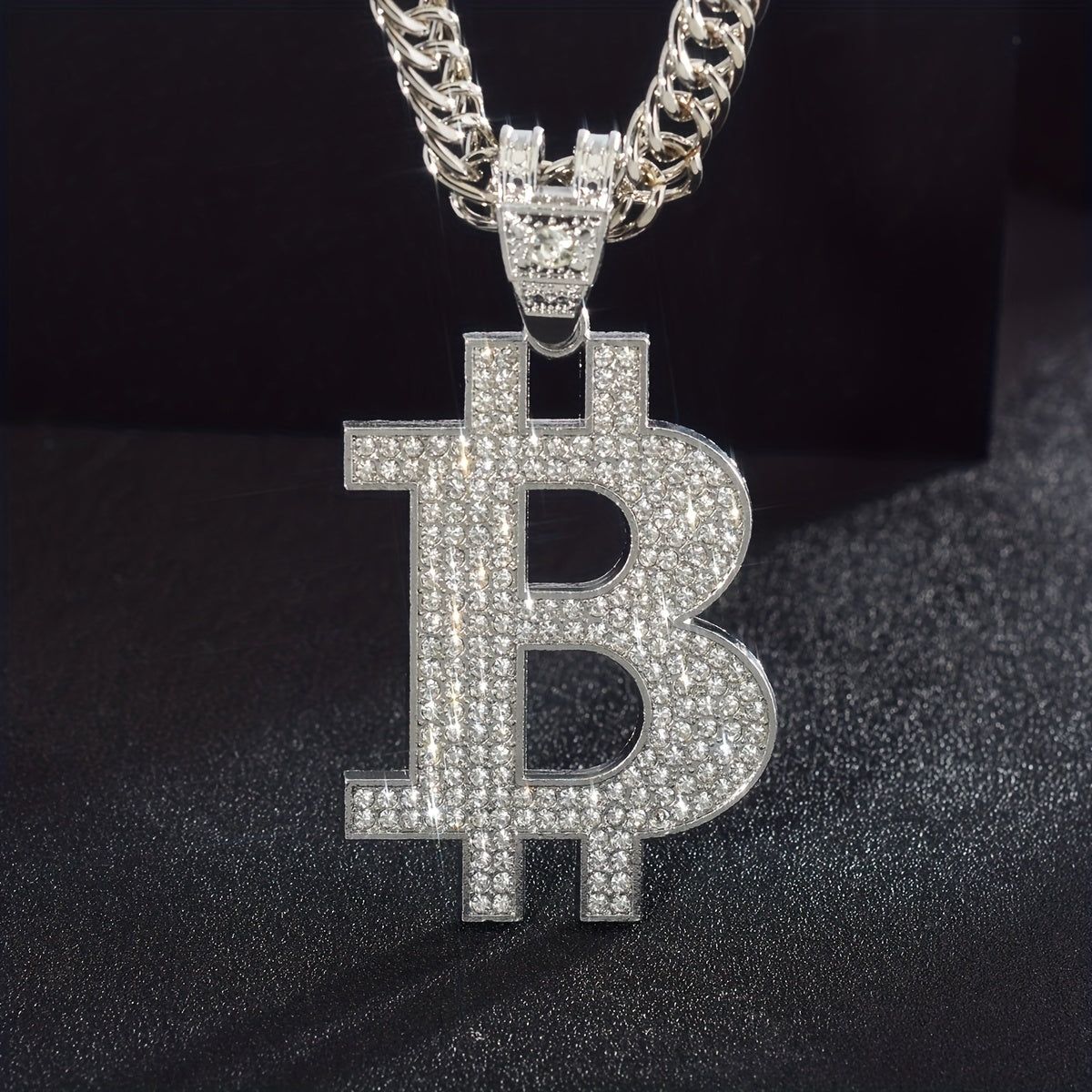 This pendant necklace features a stylish Letter B design with rhinestone inlay, perfect for hip hop fashion enthusiasts.
