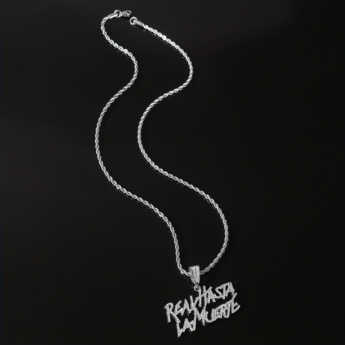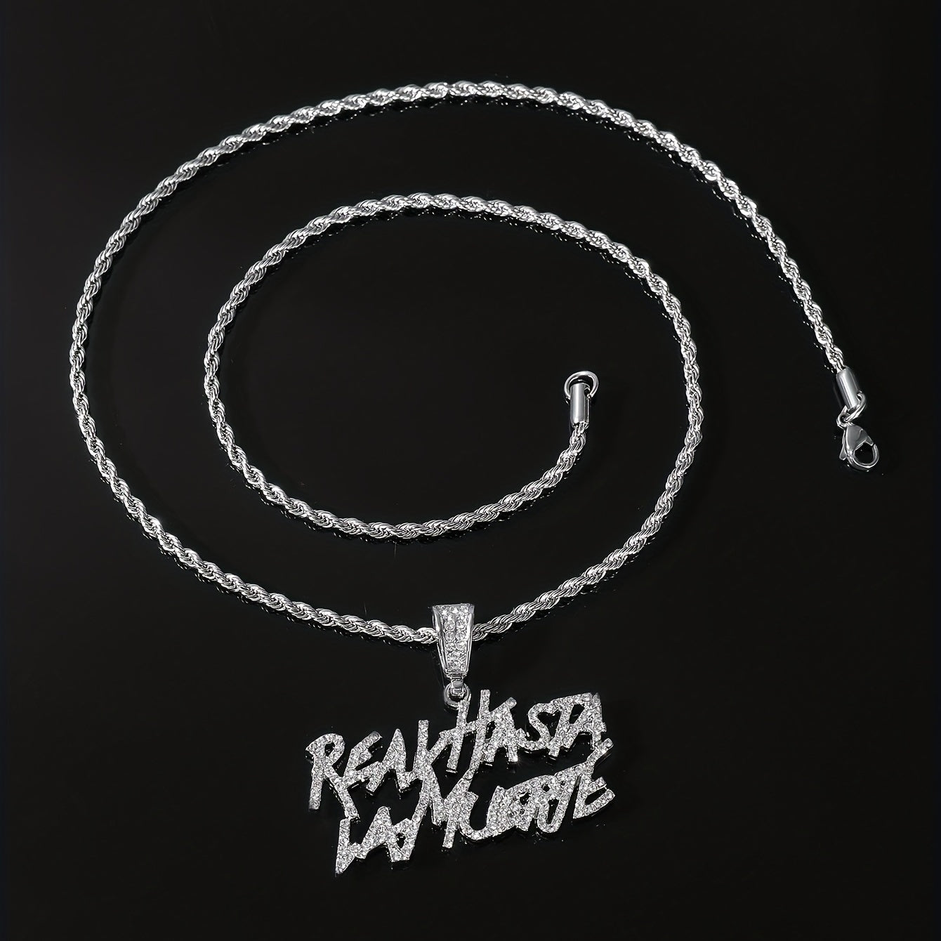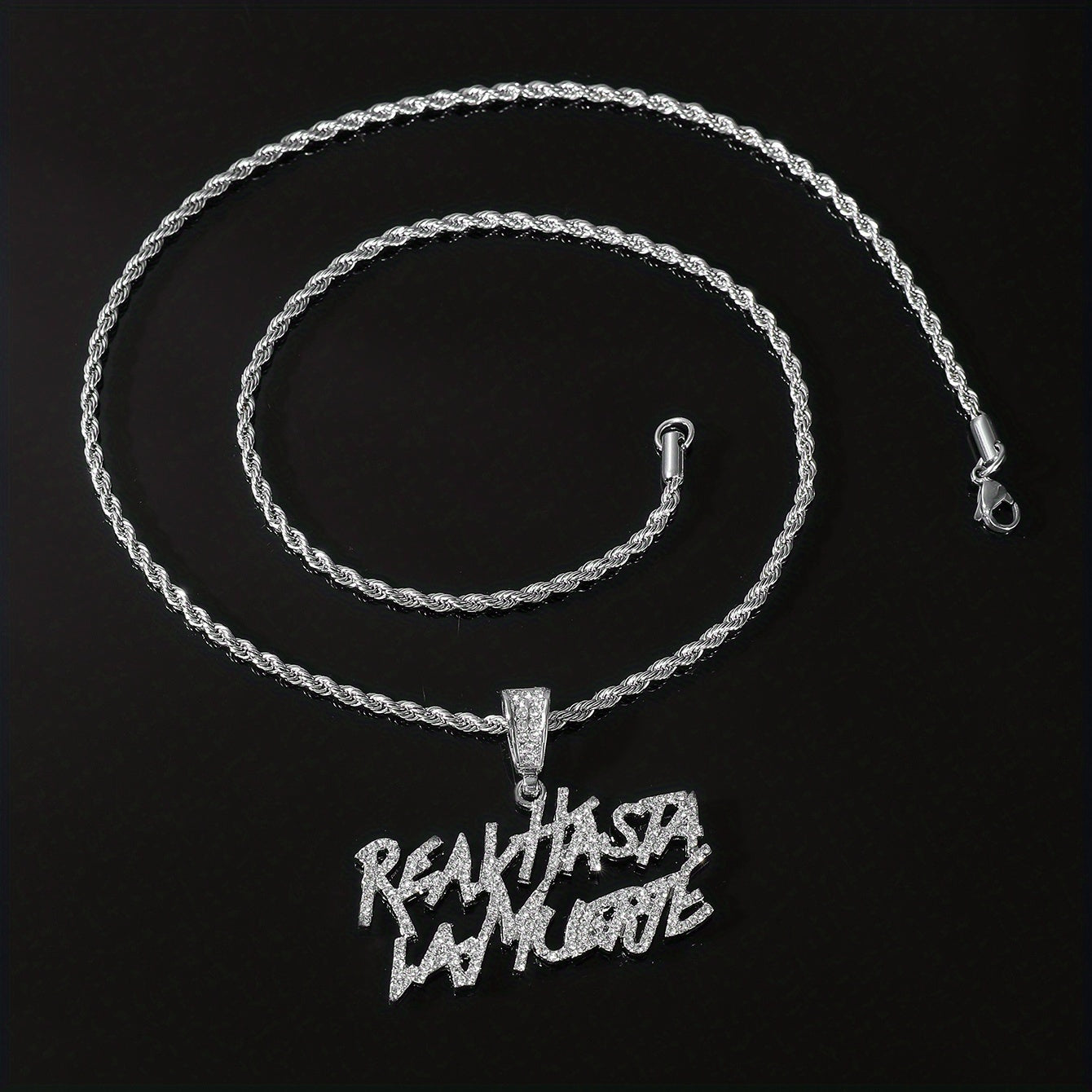 Hip Hop style necklace for men featuring faux diamond pendant. Make a bold statement with this piece of personality jewelry.