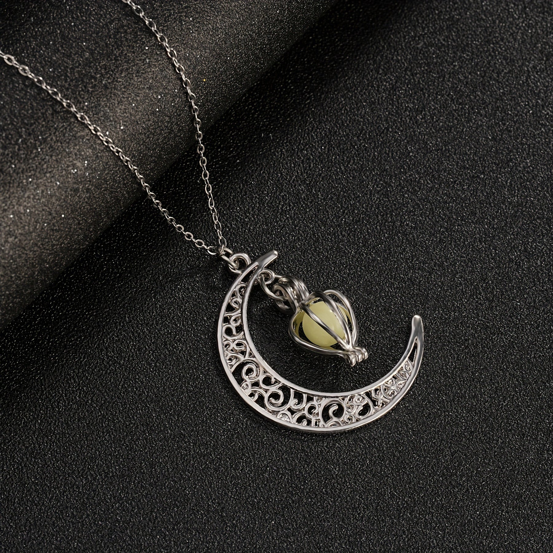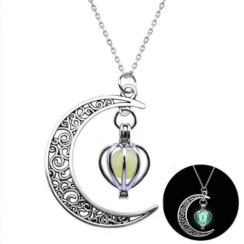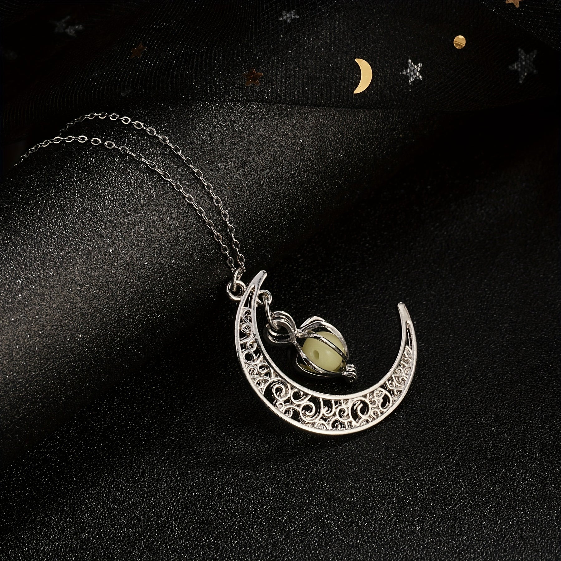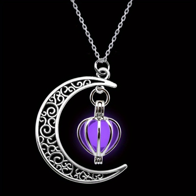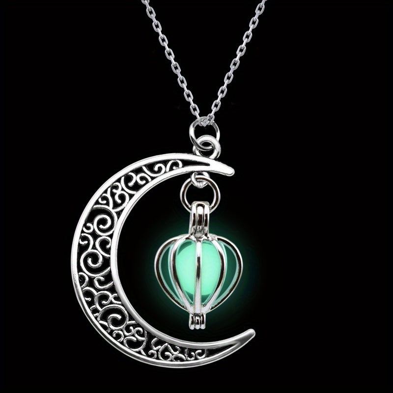 Elegant vintage necklace with a pumpkin lamp luminous pendant and moon hollow totem design, perfect for a gothic style look.