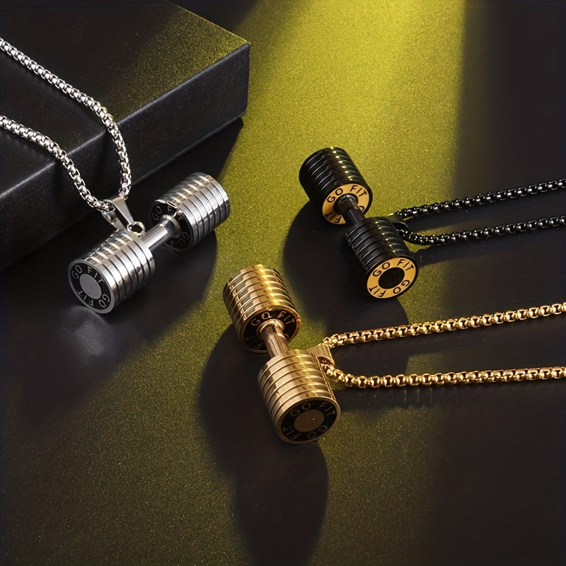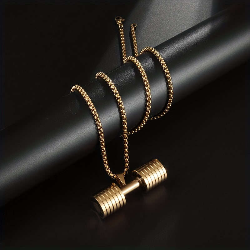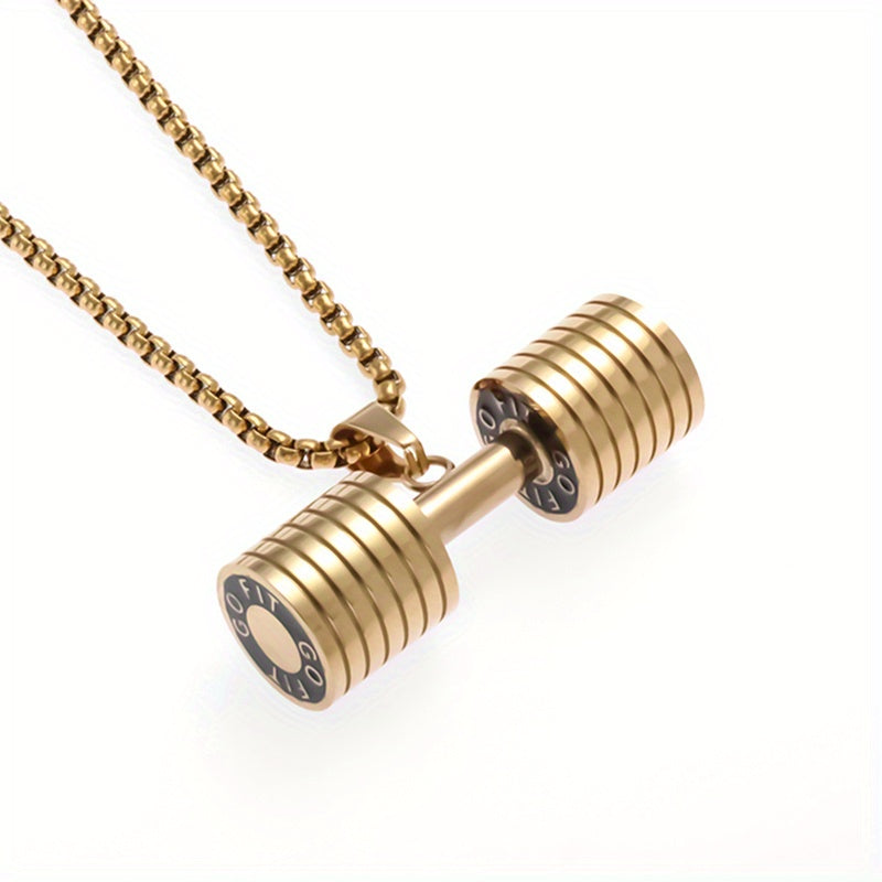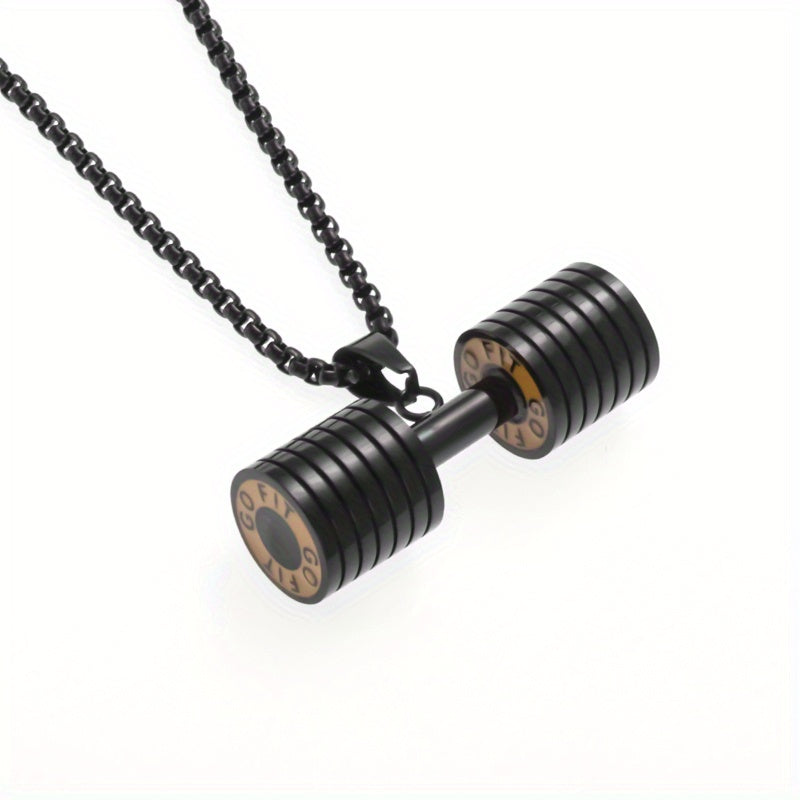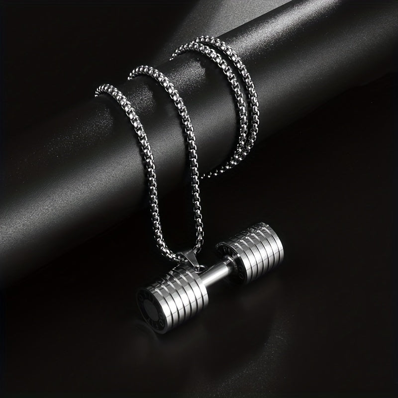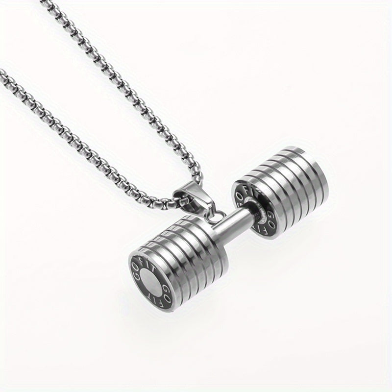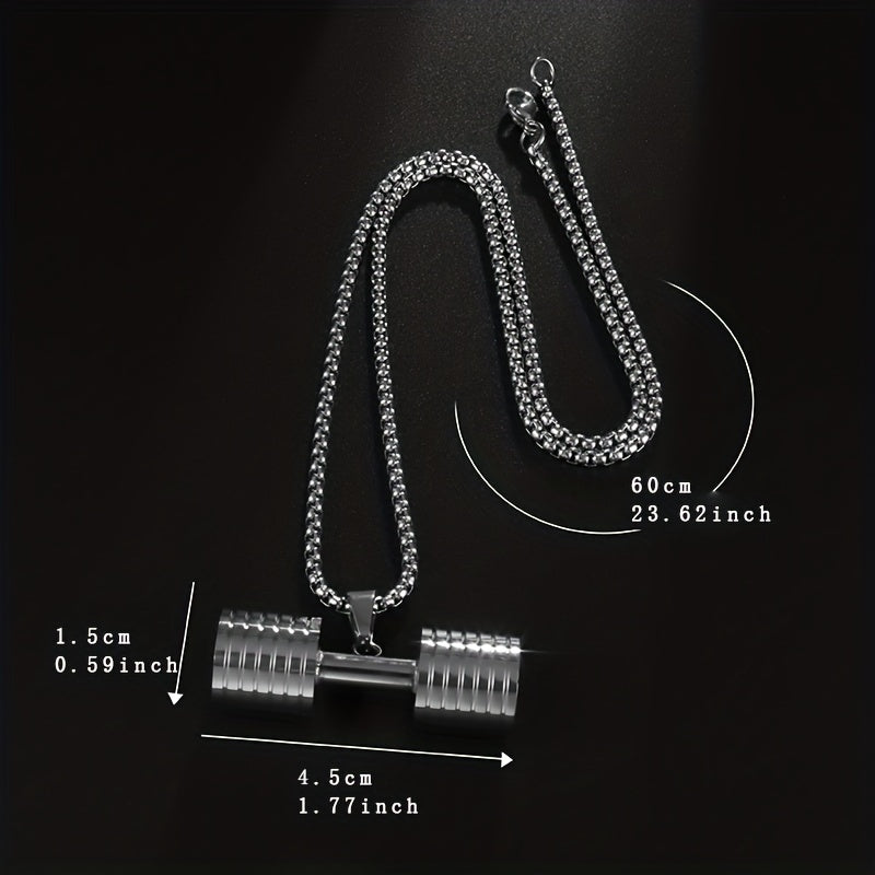 This men's necklace features a unique dumbbell shape pendant, perfect for fitness enthusiasts or anyone who loves gym-themed jewelry.