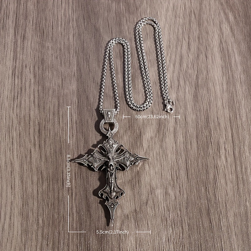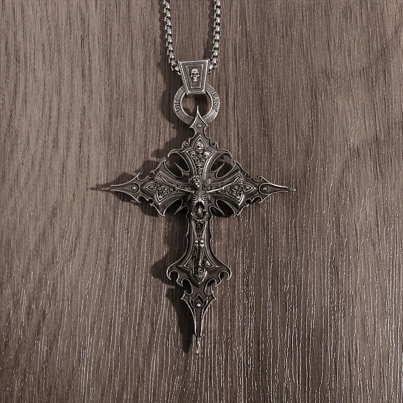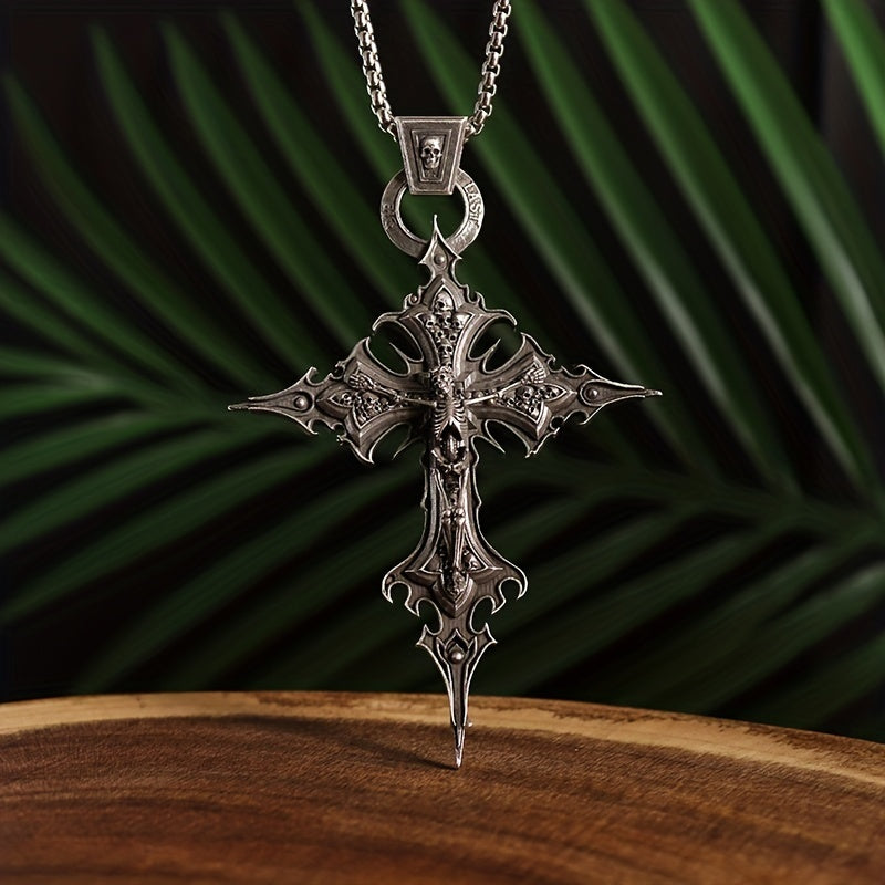 Make a bold statement with this striking skull cross pendant necklace. Perfect for casual wear, street style or party outfits.