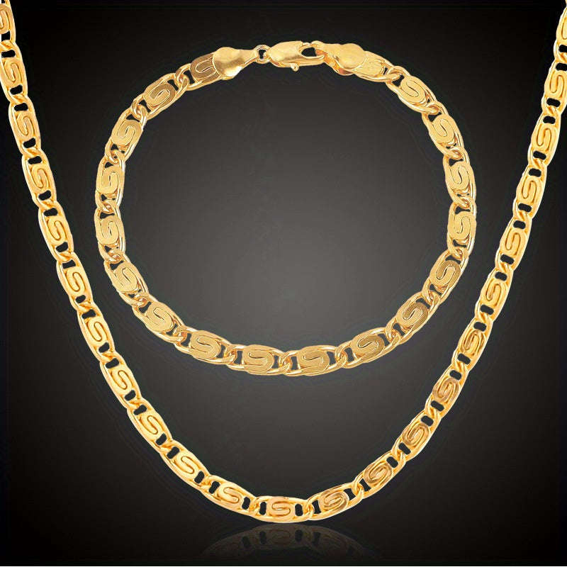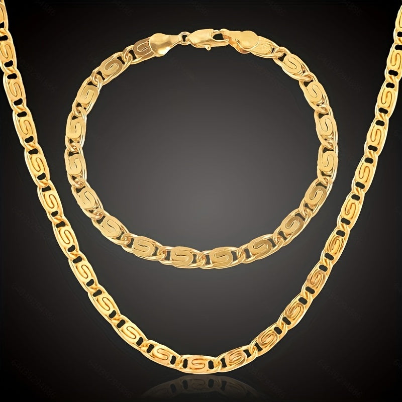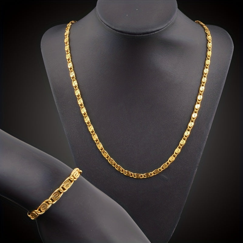 Add a touch of style to your look with this casual plated necklace and bracelet set. Perfect for holiday parties and birthdays, this set also makes a great gift for men.