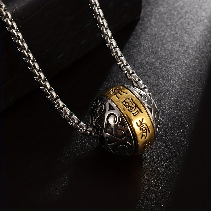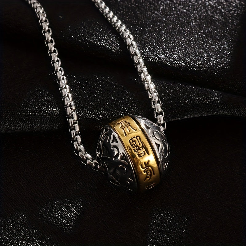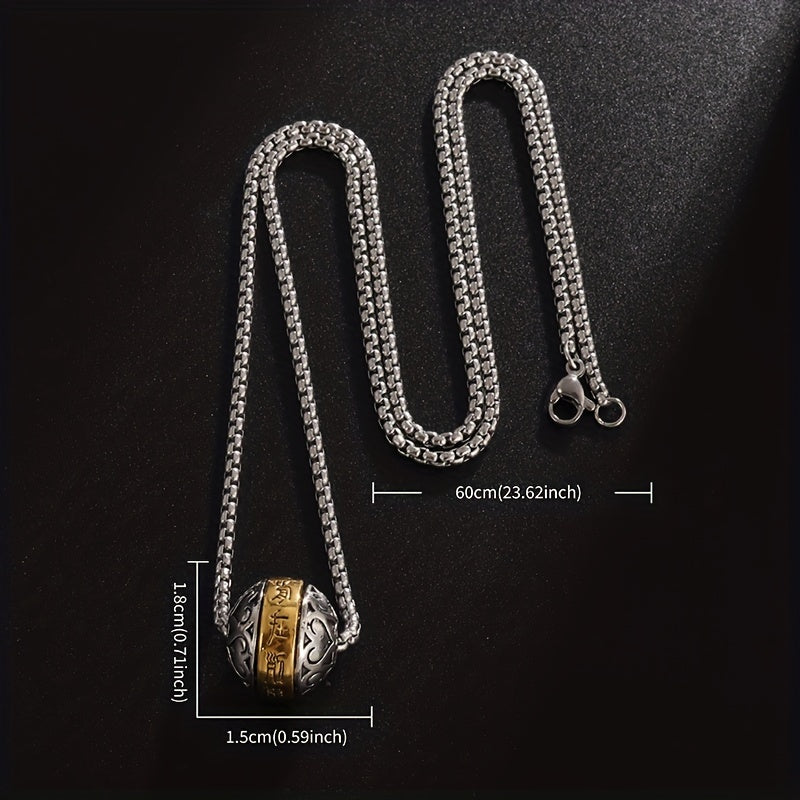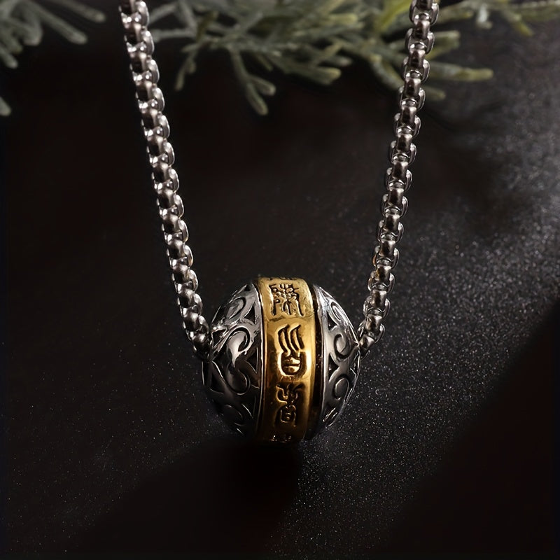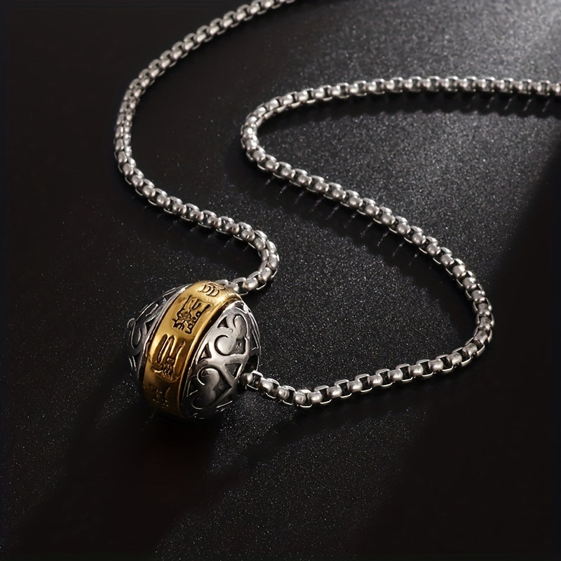 This pendant necklace features a rotatable Buddha verse ball made of copper, serving as a lucky amulet. A unique piece of jewelry suitable for a religious individual.