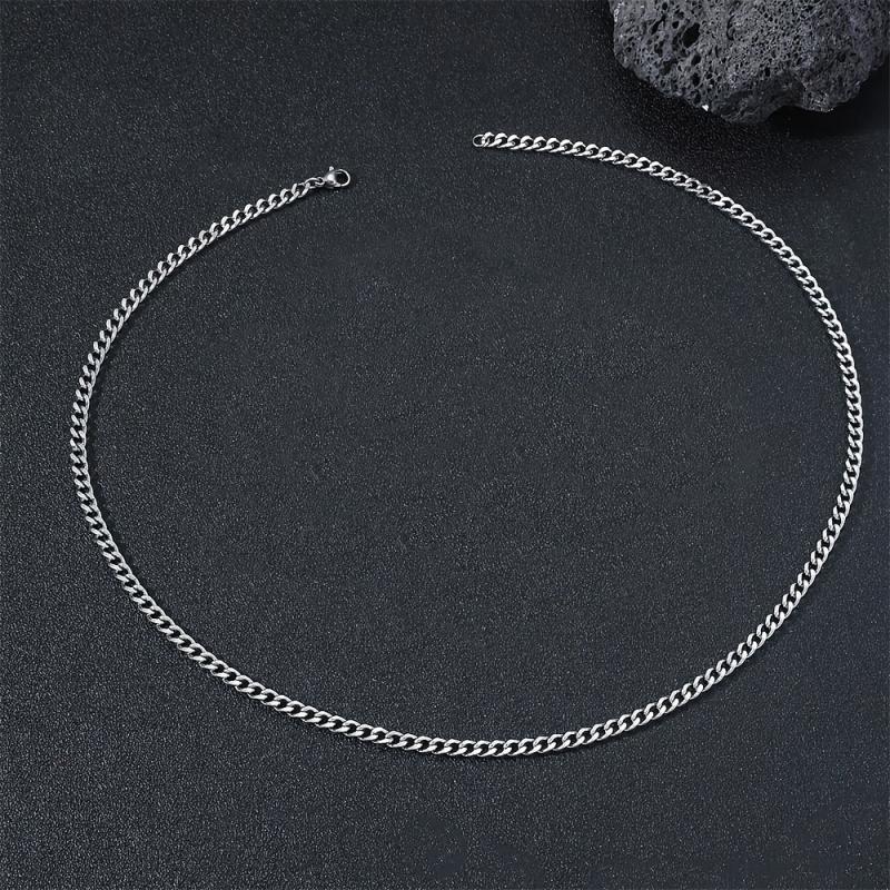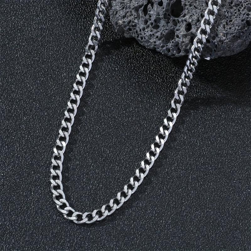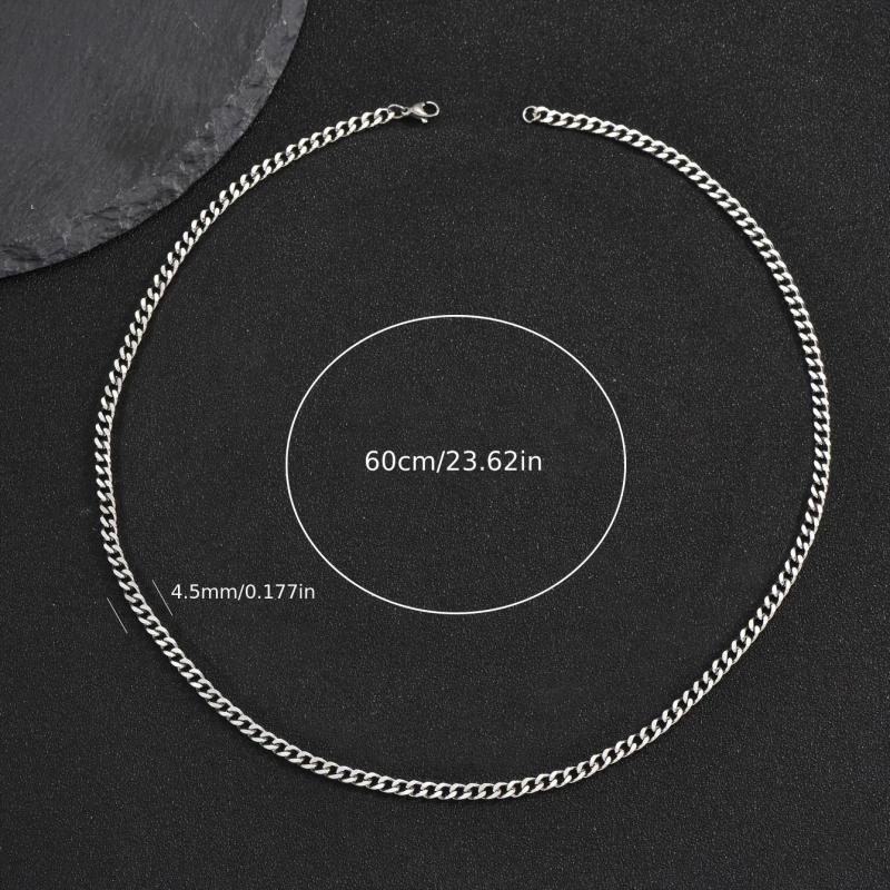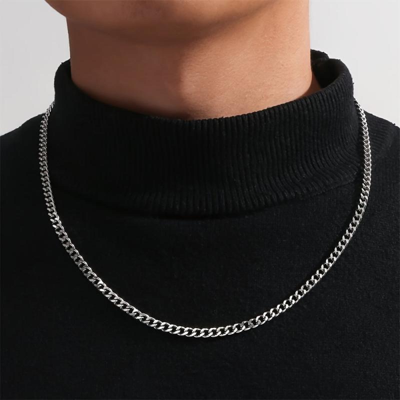 Add a touch of style to your outfit with this minimalist silvery chain necklace for men. Made of high-quality stainless steel, this necklace is perfect for everyday wear or special occasions. It also makes a great gift for someone special.