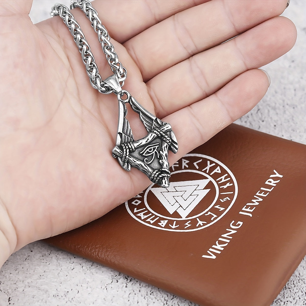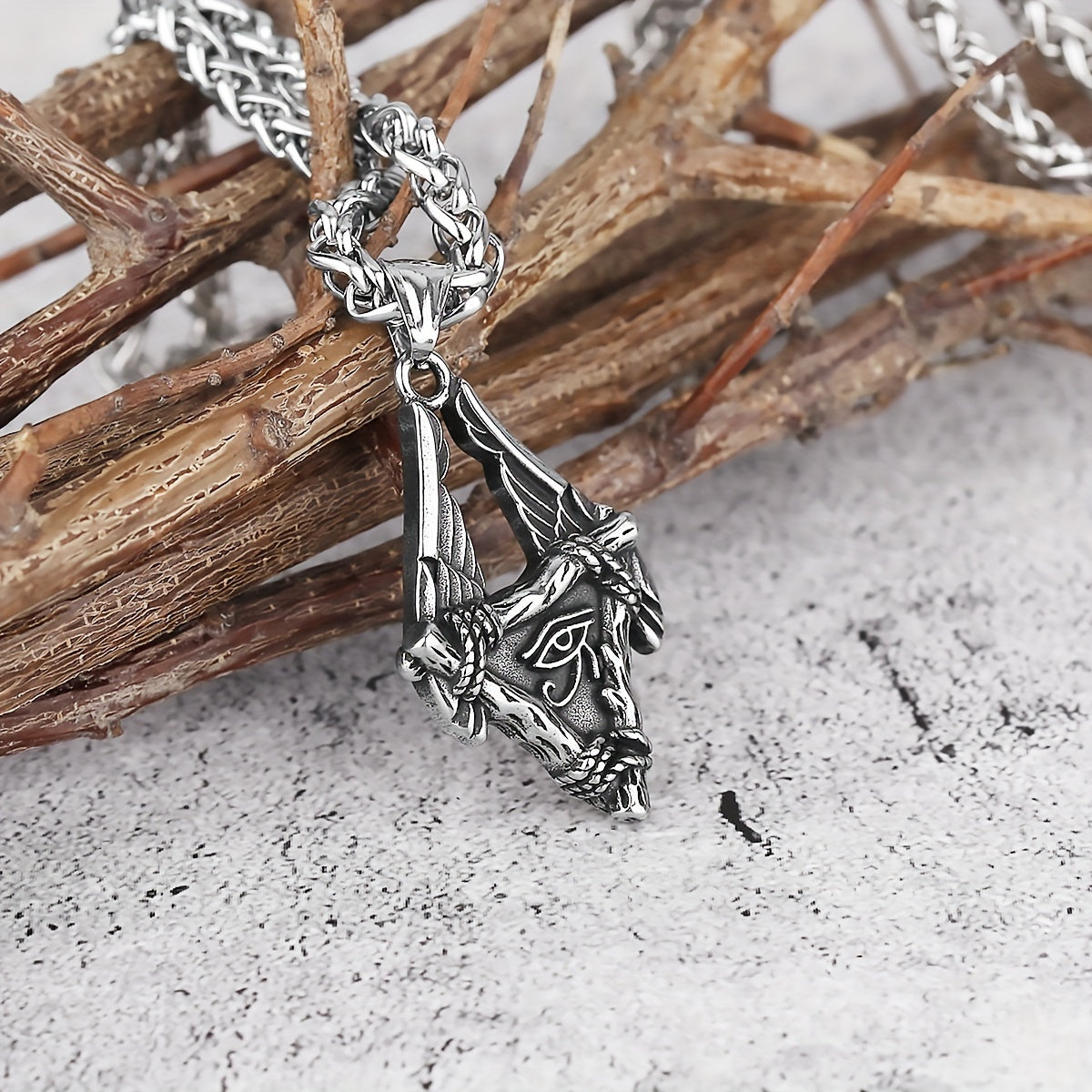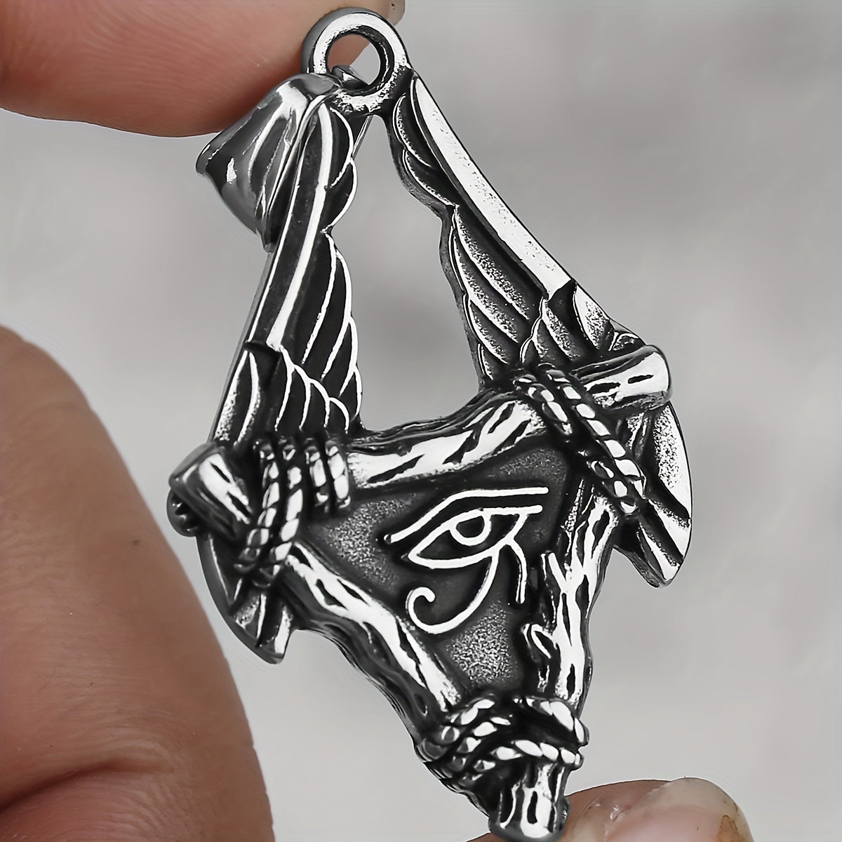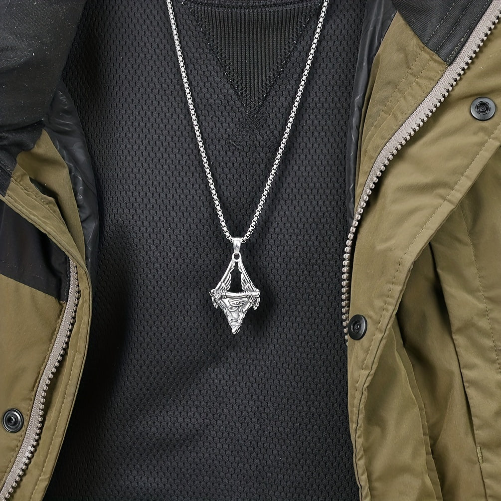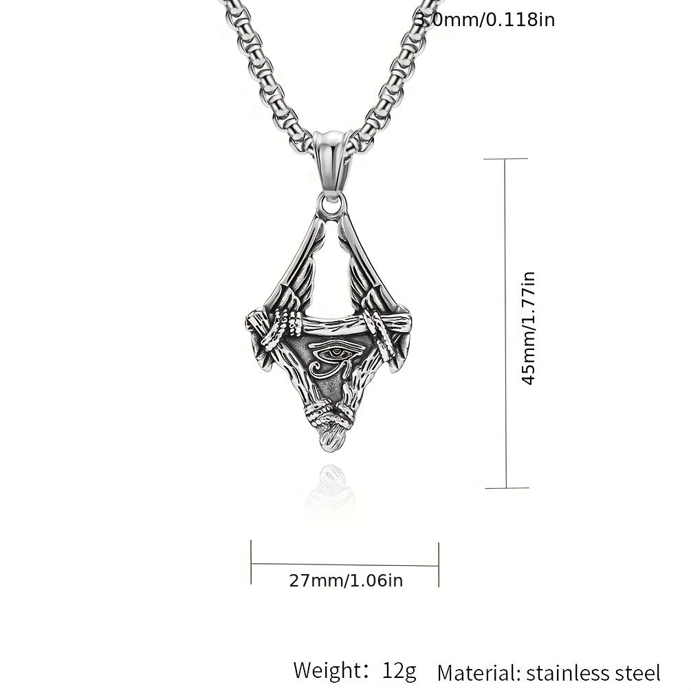 This necklace features a pendant inspired by the Eye of Horus. Made of high-quality stainless steel, it symbolizes protection and power.