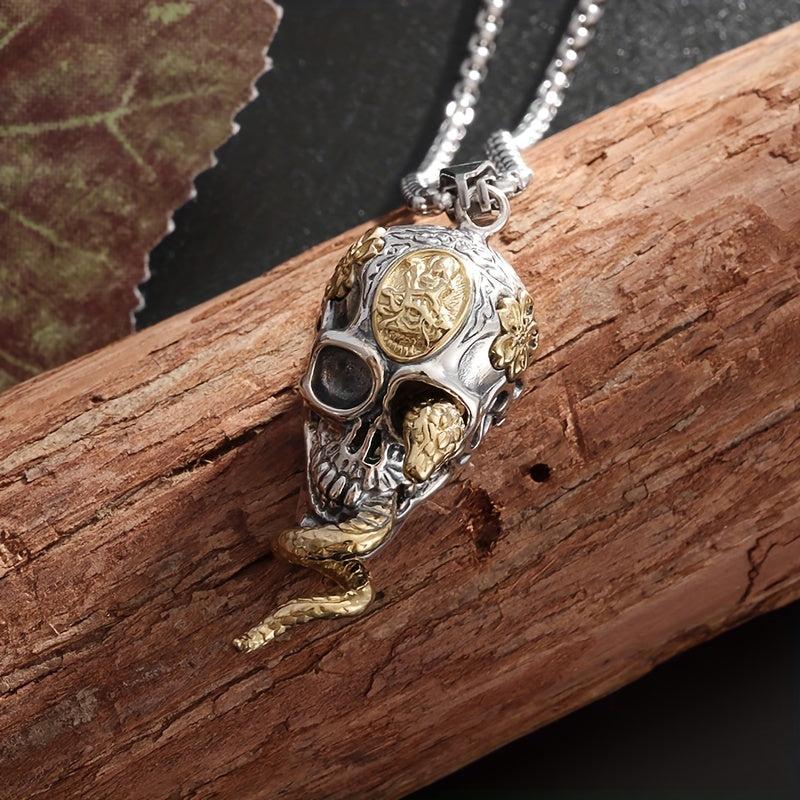 Add a touch of edgy style to your look with this men's snake and skull pendant necklace. Made of high-quality alloy, this fashionable accessory is a great gift for any modern man.