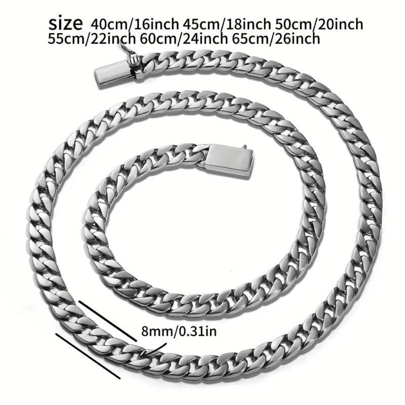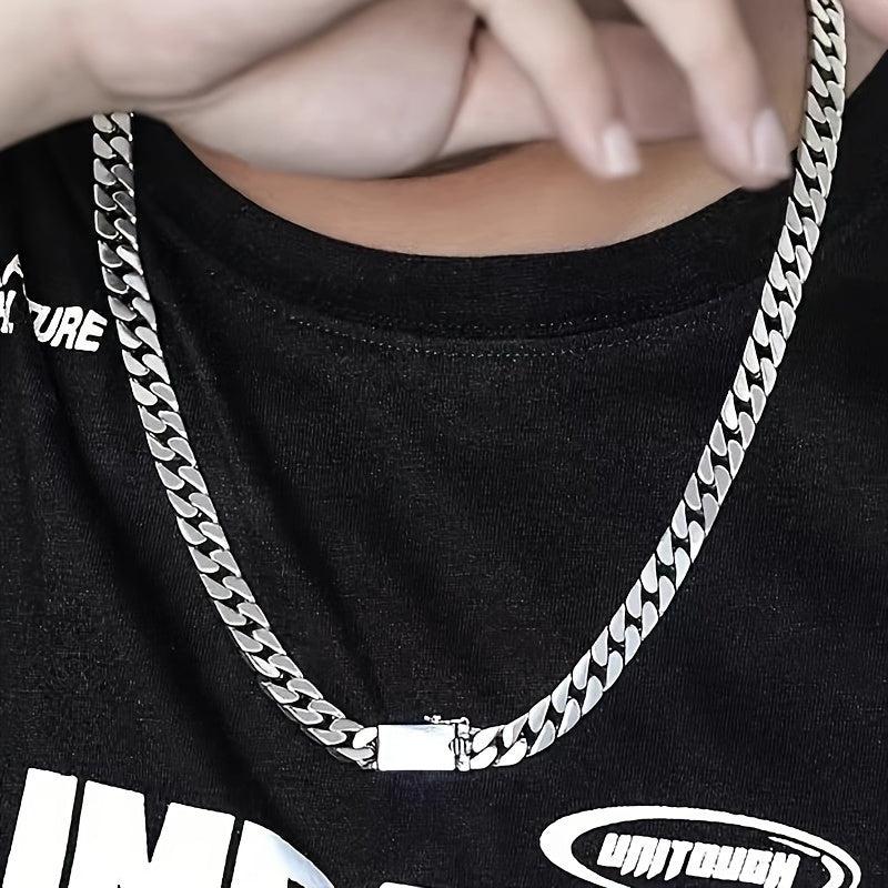 Add a touch of punk style to your daily look with this glittering stainless steel Cuban chain necklace. The magnetic closure makes it easy to wear every day, ensuring durability and a perfect fit.