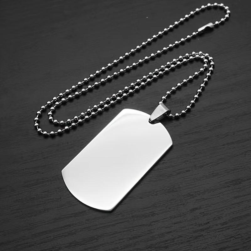 Add a personalized touch to your style with this stainless steel necklace featuring a military ID tag pendant. Laser engraving allows for square text customization. Each necklace comes in random packaging.