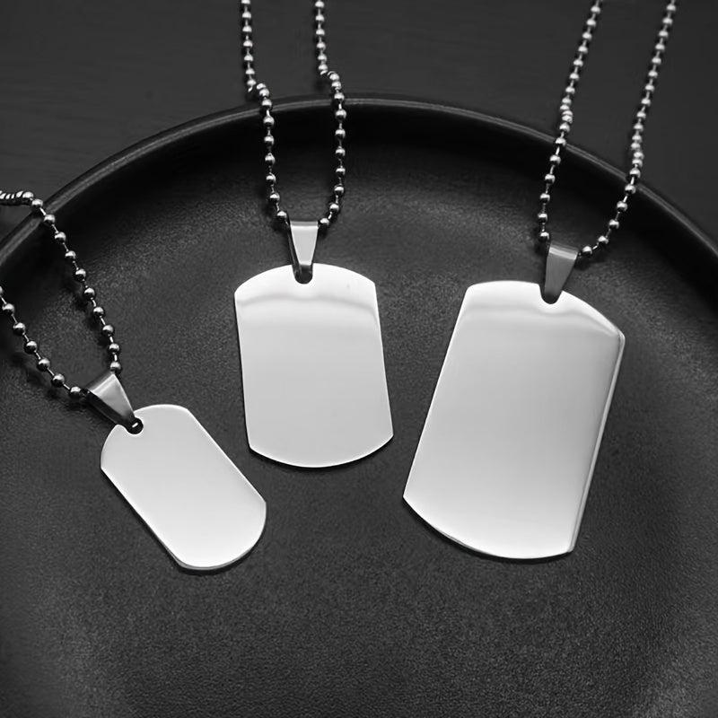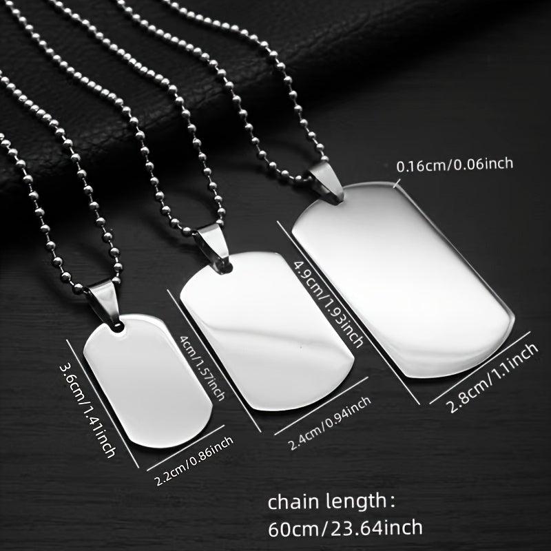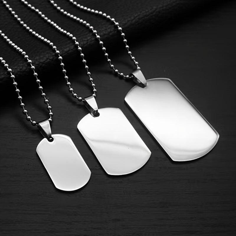 Men's Stainless Steel Necklace ID Tag Pendant Laser Engraved Custom Text