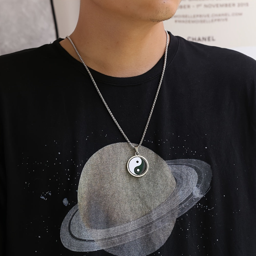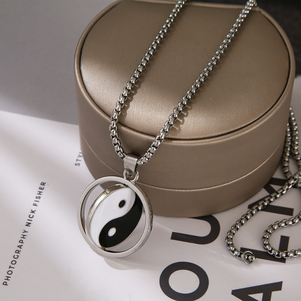 This hip hop necklace features a rotating Yin Yang pendant, perfect for adding a stylish touch to your outfit.