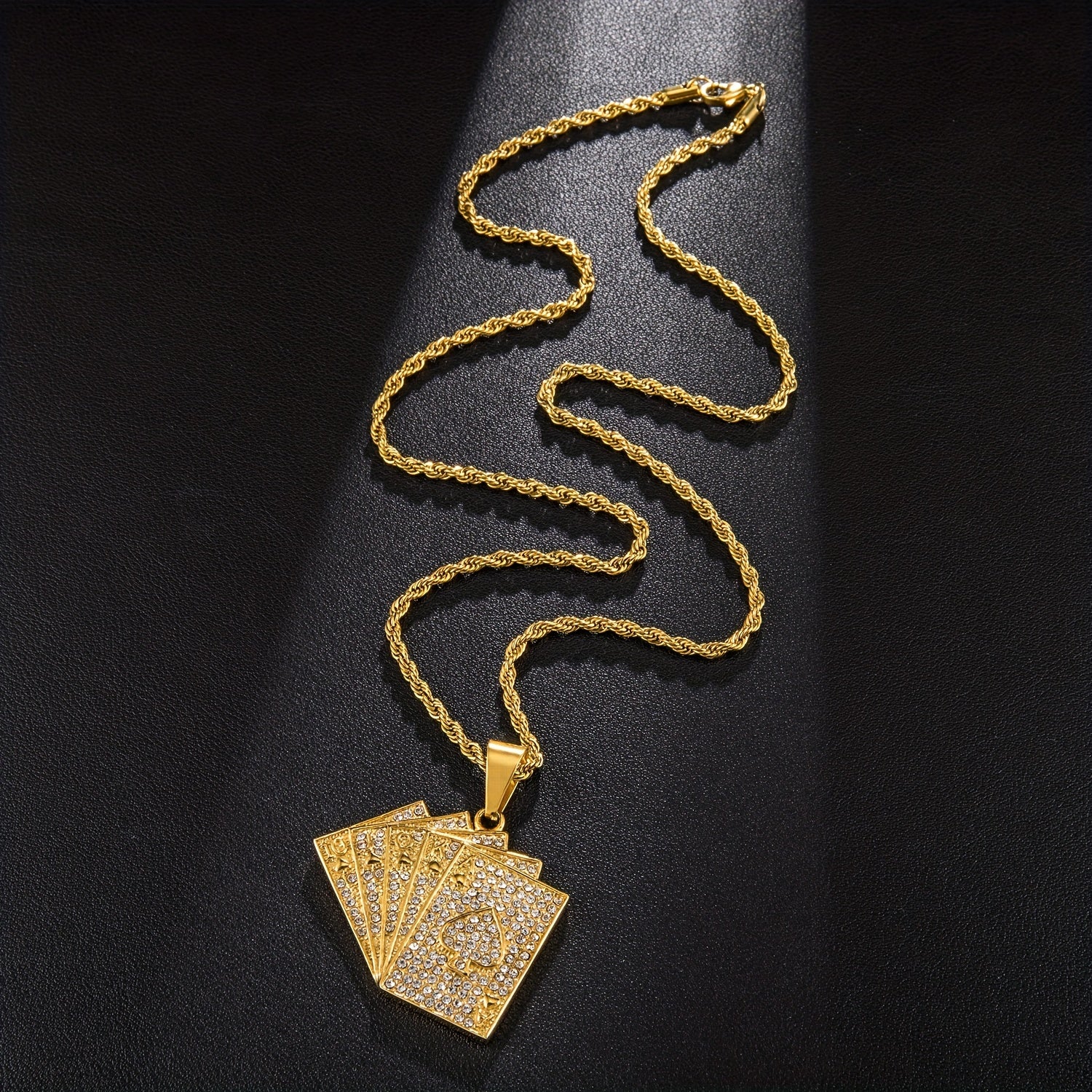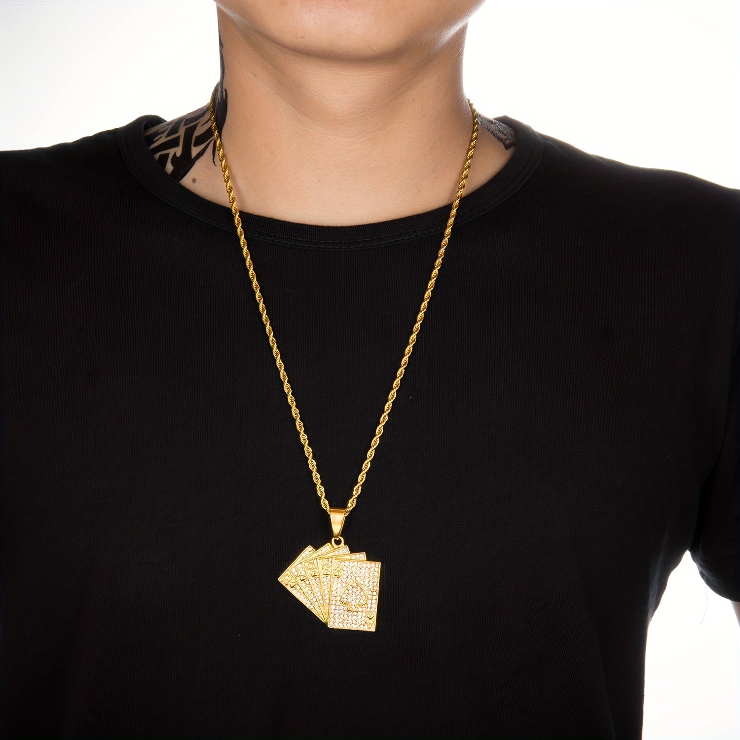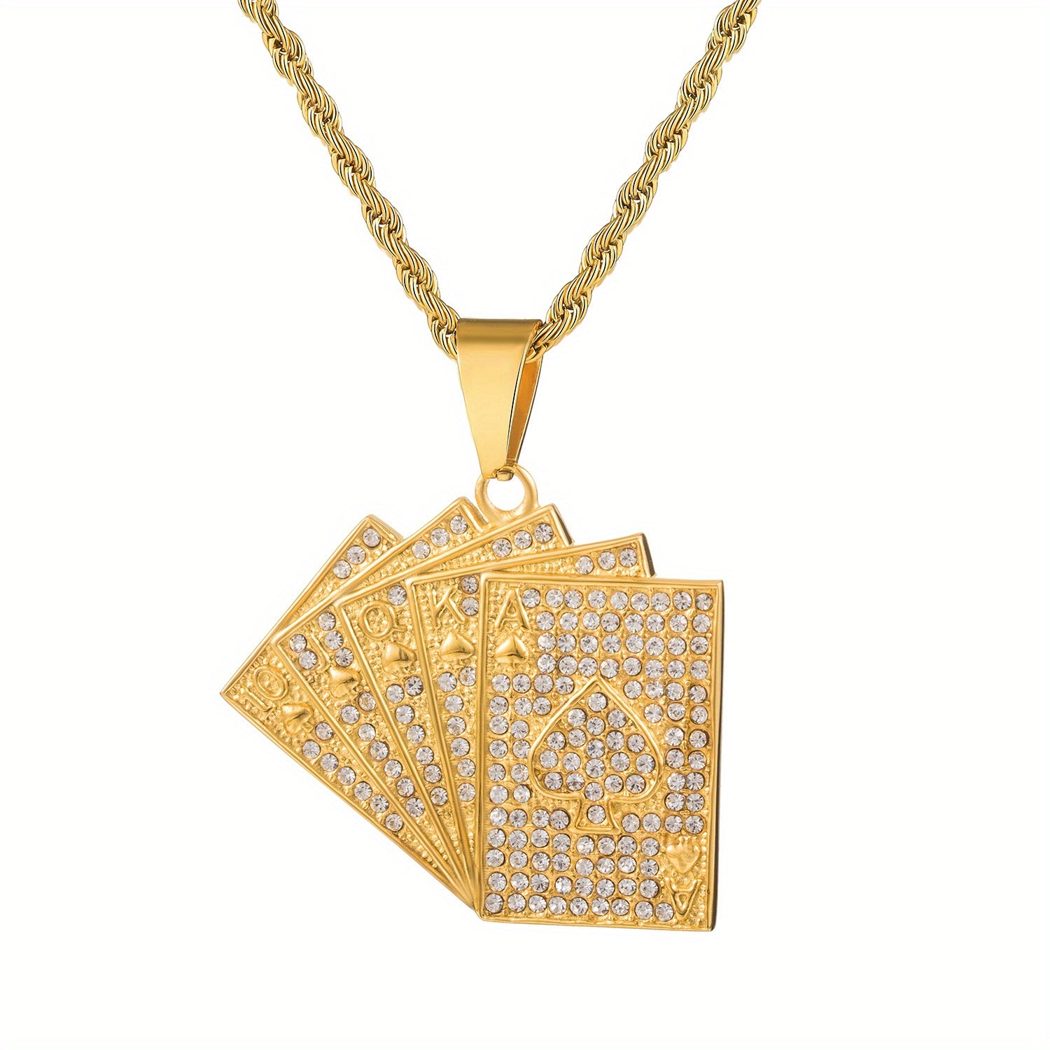 This necklace features a full set of playing cards design with zircon pendant, making it a stylish hip hop accessory for men.