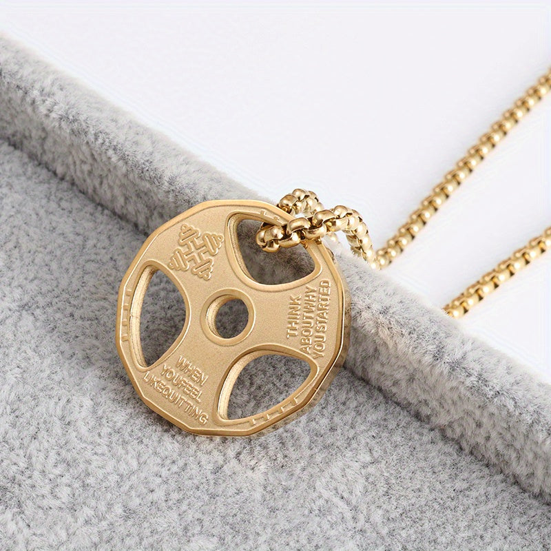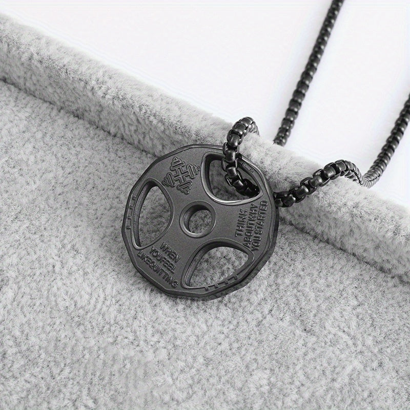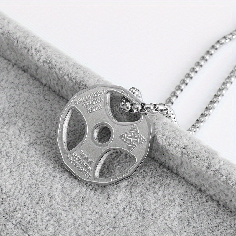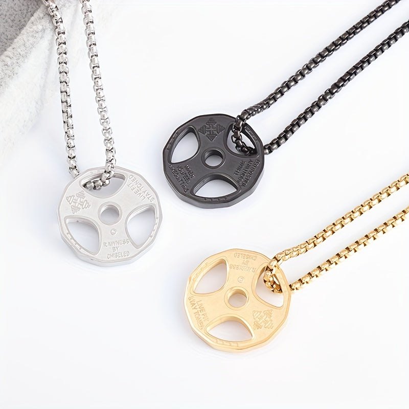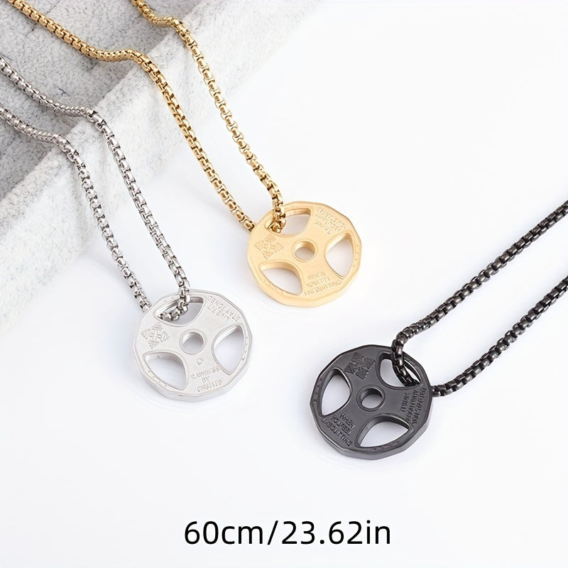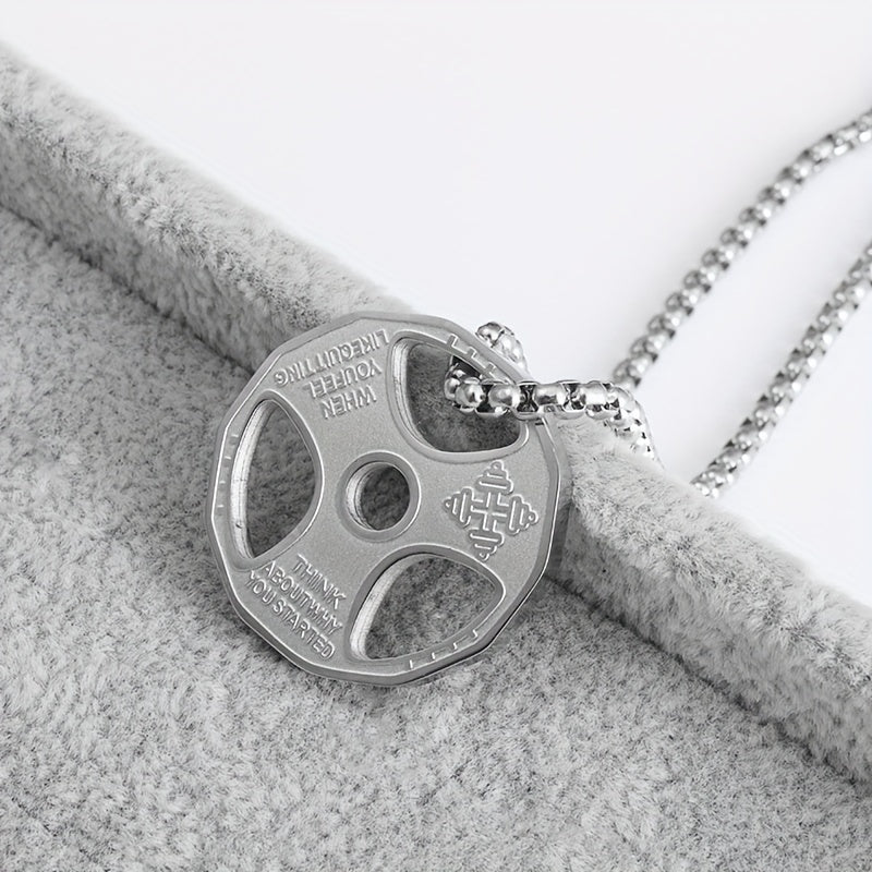 Show off your muscles with this stainless steel dumbbell pendant necklace. Perfect for gym and fitness enthusiasts, this accessory exudes strength and style.