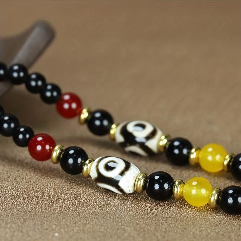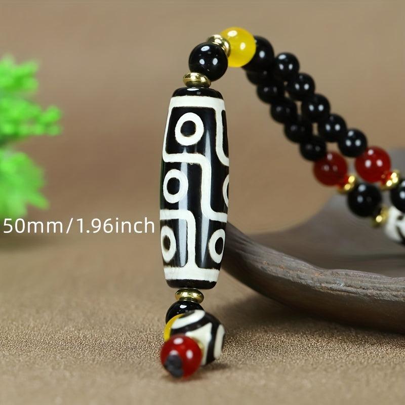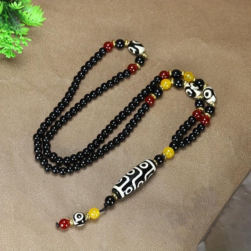 This men's necklace features natural stone pendant with Dzi beads and agate, providing spiritual protection and ethnic style.