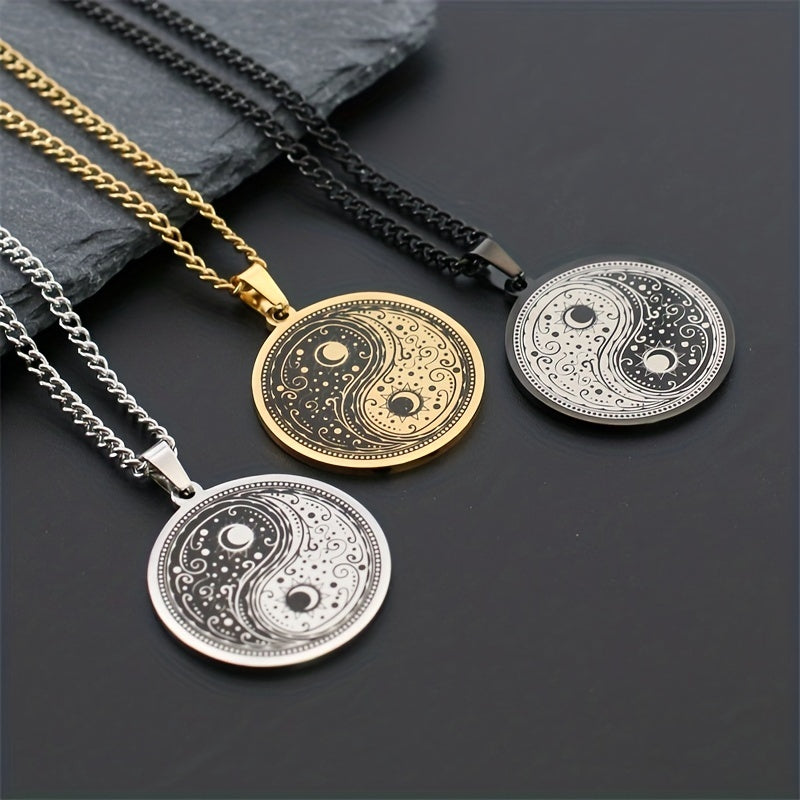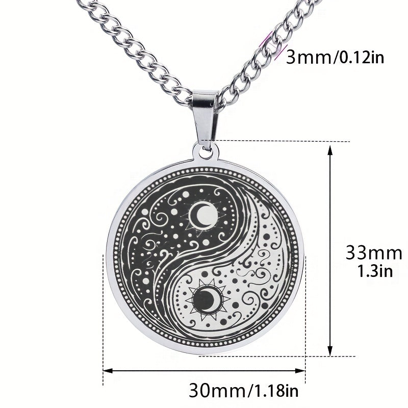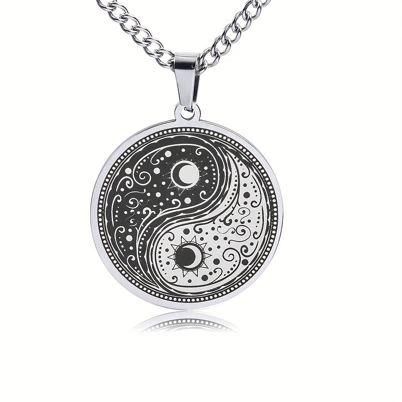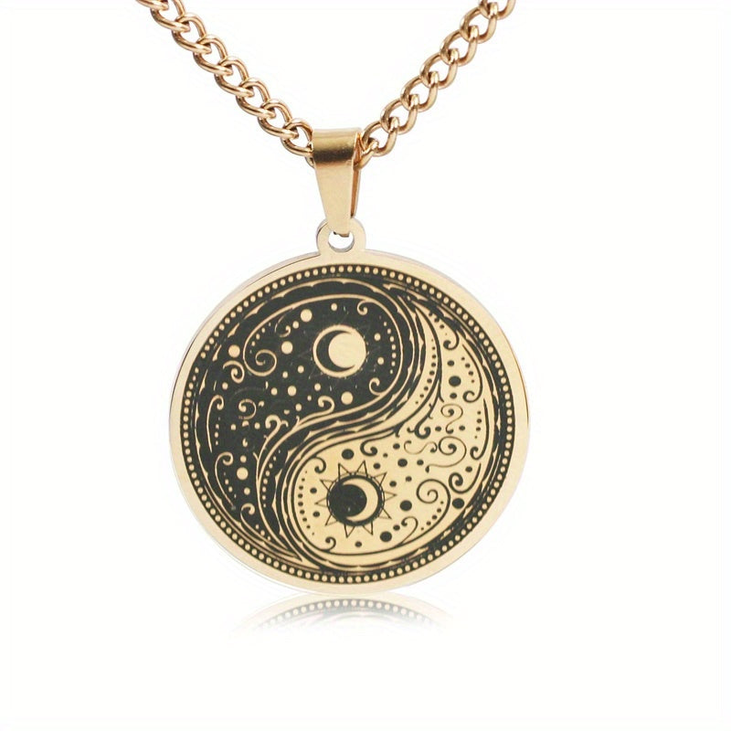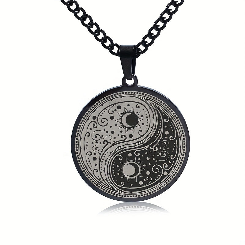 This street casual pendant necklace is designed for men, featuring a sun, moon, and yin yang tai chi symbol. Add an edgy touch to your look.