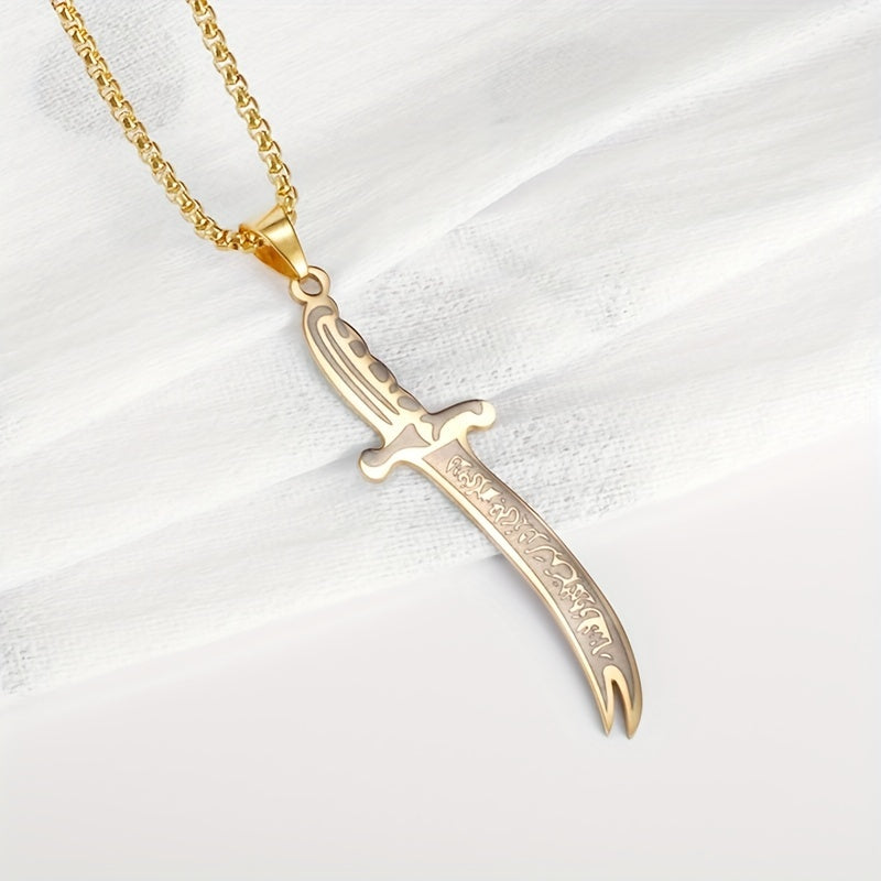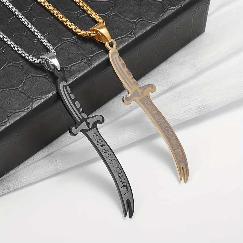 This unique sword pendant necklace is a perfect accessory for men, suitable for casual wear or as a thoughtful gift.
