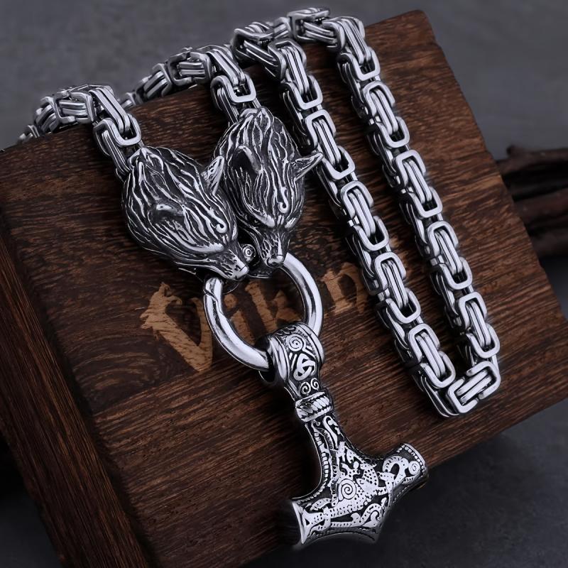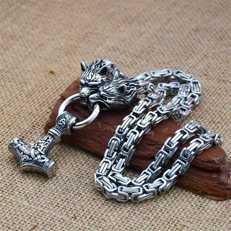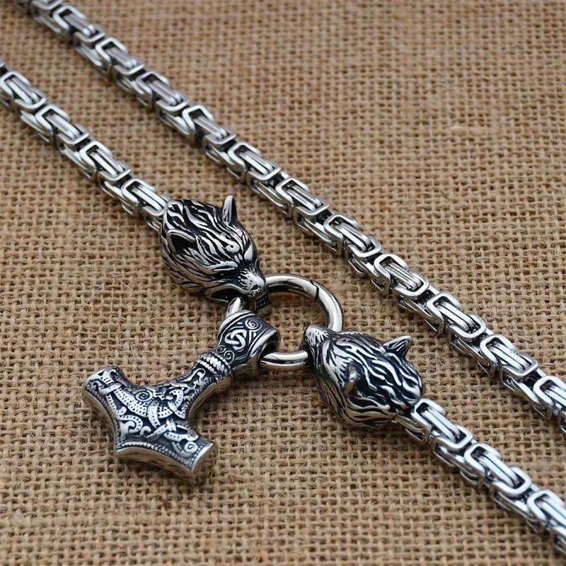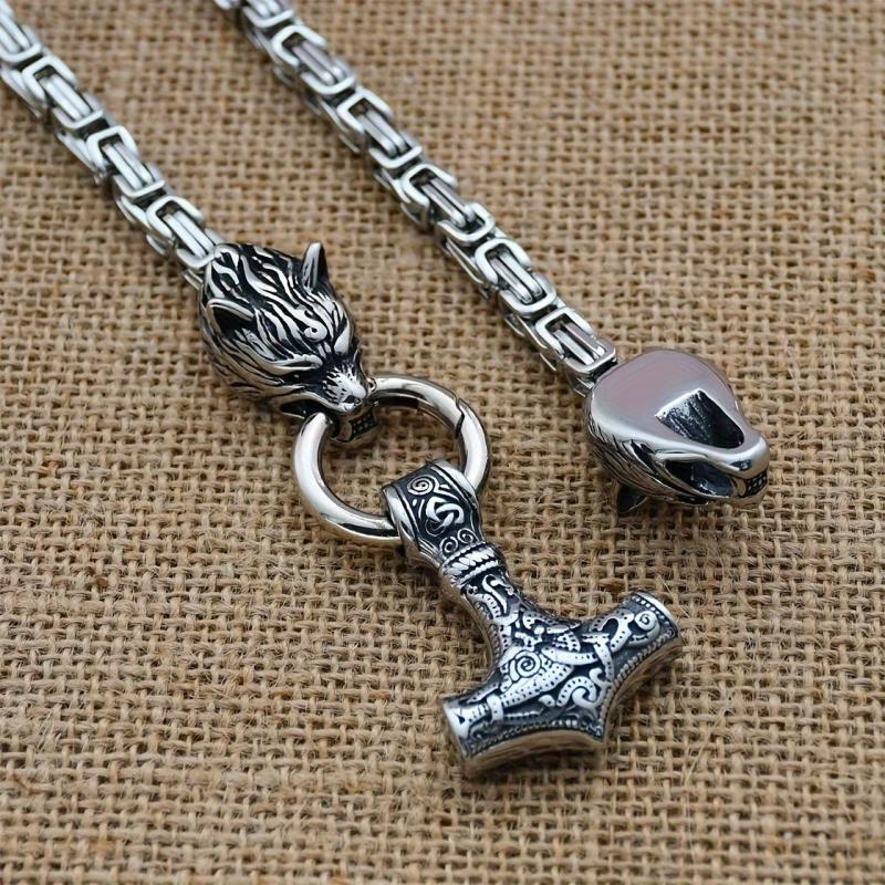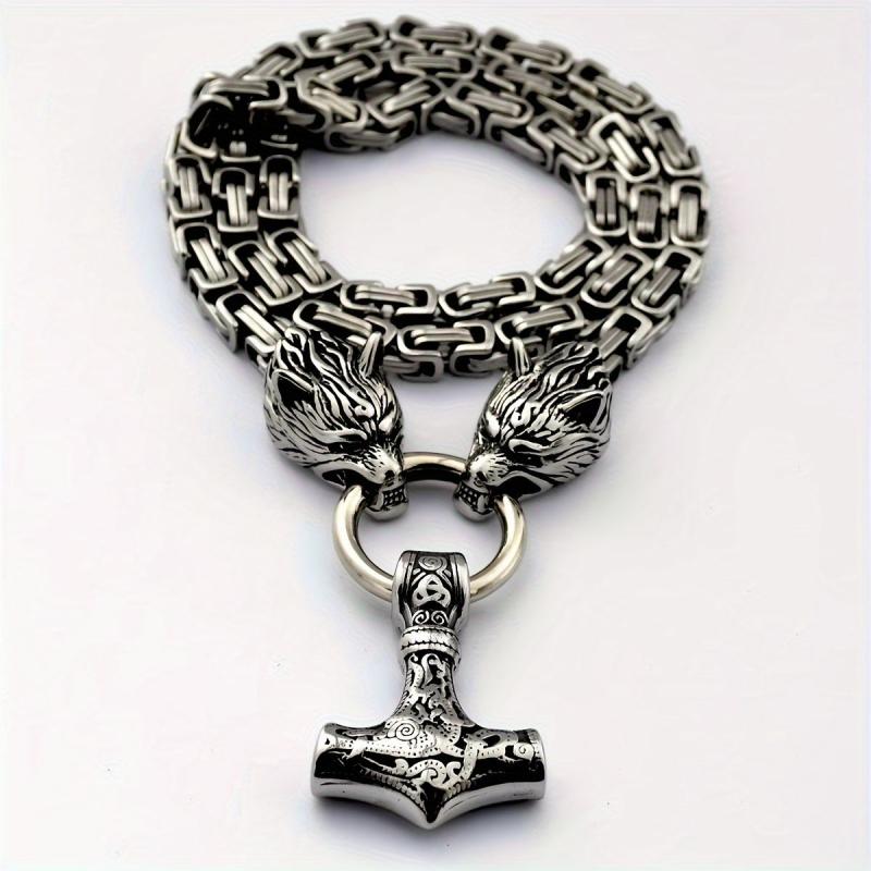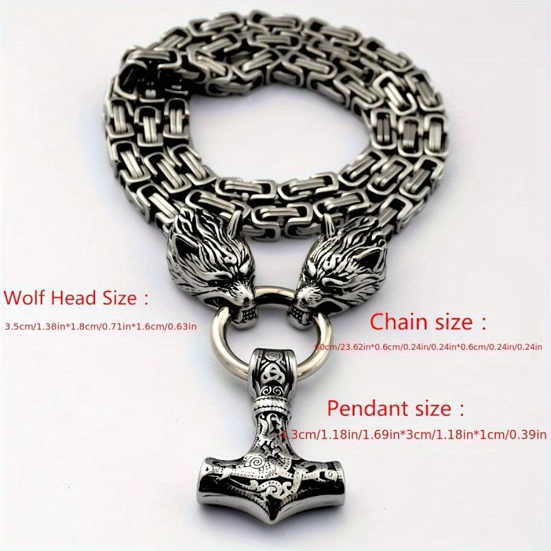 This necklace features a Viking wolf head hammer pendant, perfect for adding a touch of punk style to your daily outfits. Made of zinc alloy and stainless steel, it is durable and suitable for everyday wear. The magnetic closure adds convenience to wearing and removing. Embrace your wild side with this unique animal-themed accessory.