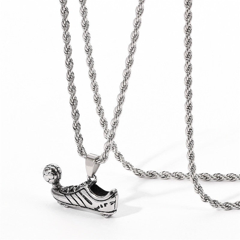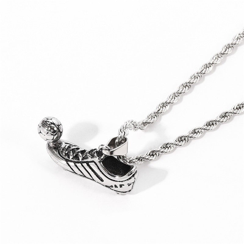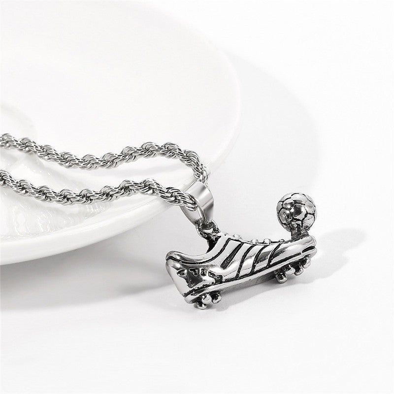 This pendant necklace features a kick football design for a stylish and unique look, perfect for hip hop and punk enthusiasts.