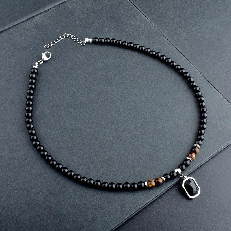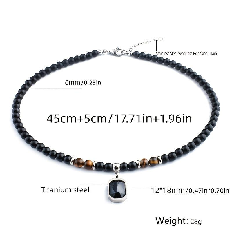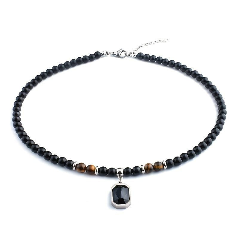 Elevate your style with this men's stainless steel necklace featuring a zircon pendant and natural stone beads for a unique and bold look.