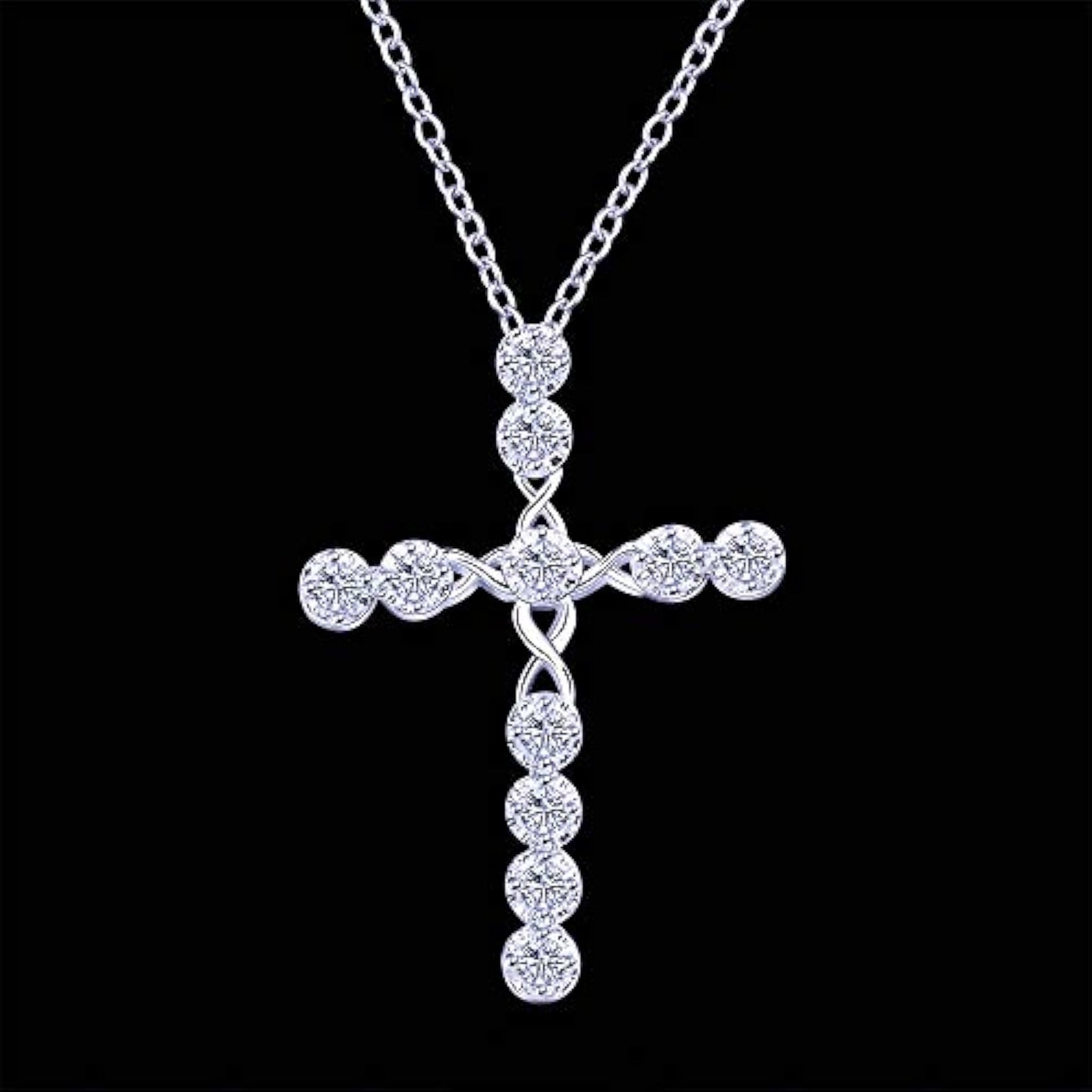 This stunning cross pendant features midnight sparkle crystal elements plated for a luxurious look.