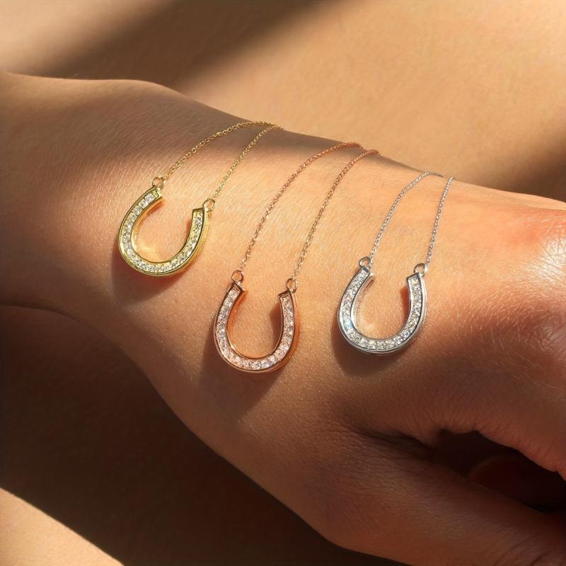 Elevate your everyday look with this stylish horseshoe pendant necklace featuring zirconia. Perfect for daily wear.