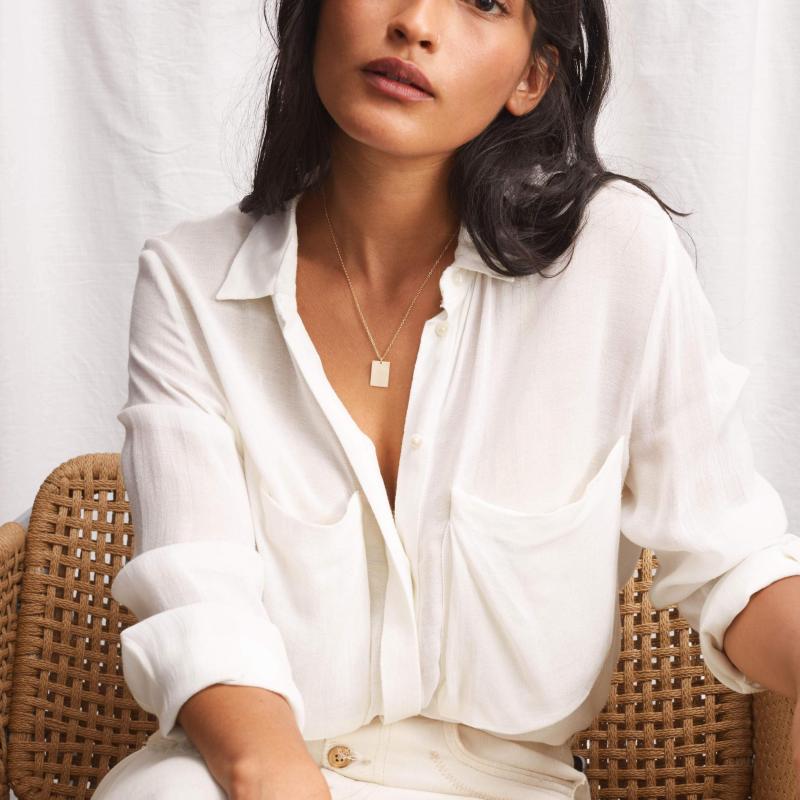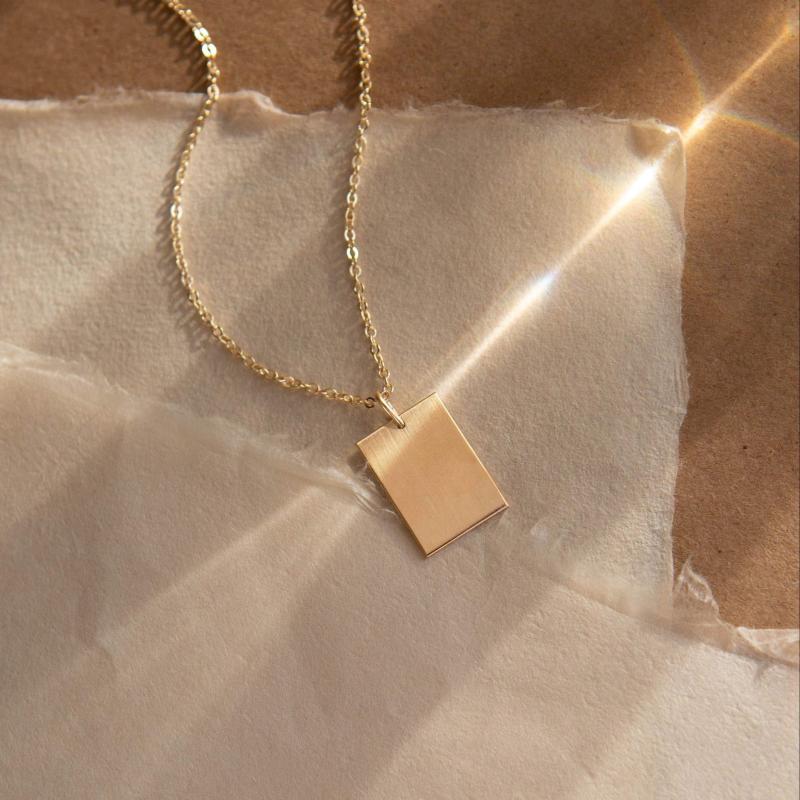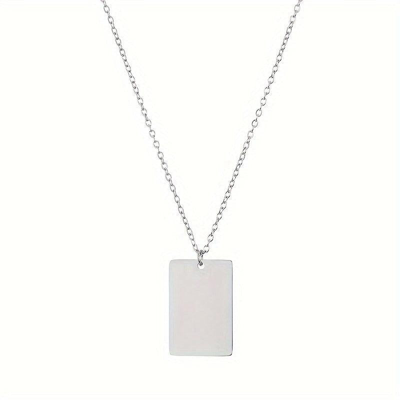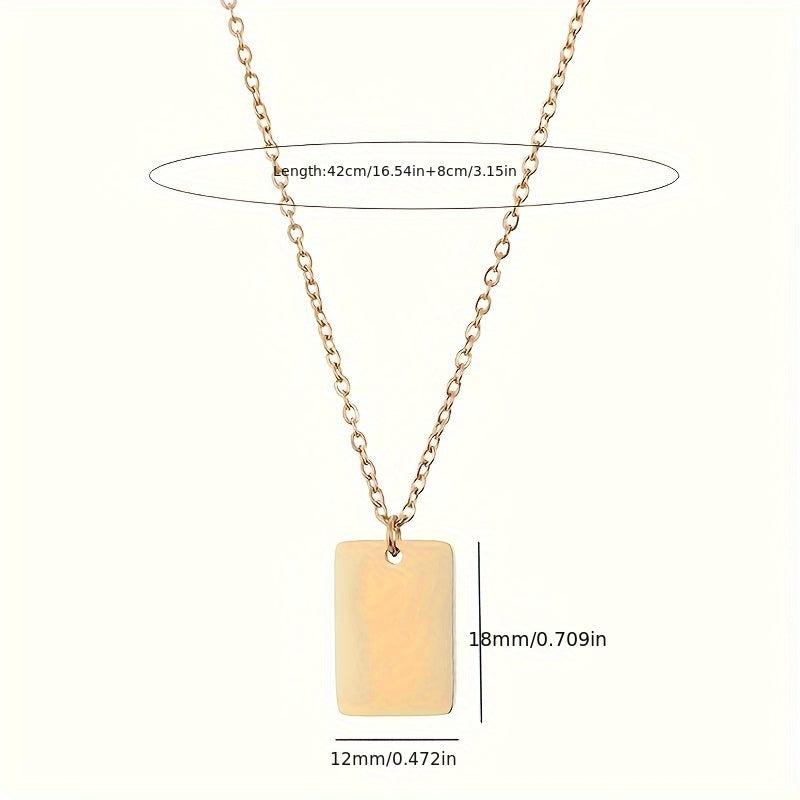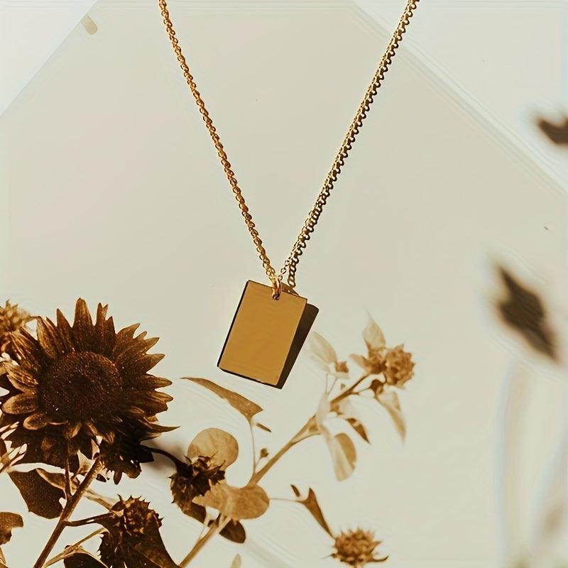 This stainless steel necklace features a glossy 18x12mm square pendant with a golden tone chain, perfect for everyday wear. Ideal for both women and men, this unisex couple's jewelry adds a touch of elegance to any casual outfit.