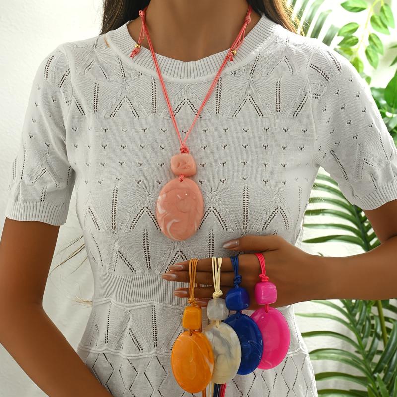Elevate your style with this lightweight teardrop pendant necklace featuring a smooth glossy finish. Perfect for everyday wear and vacation outfits all year round.