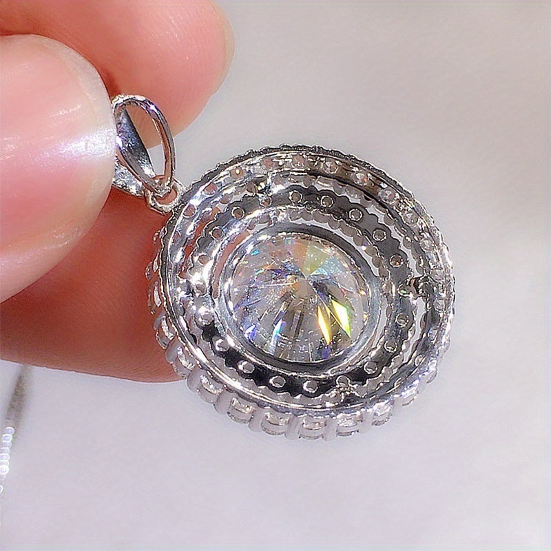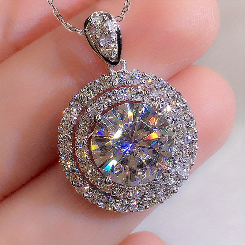 Elegant and delicate solitaire necklace featuring a moissanite stone in a 925 silver plated setting. Perfect for bridal or romantic wedding looks.