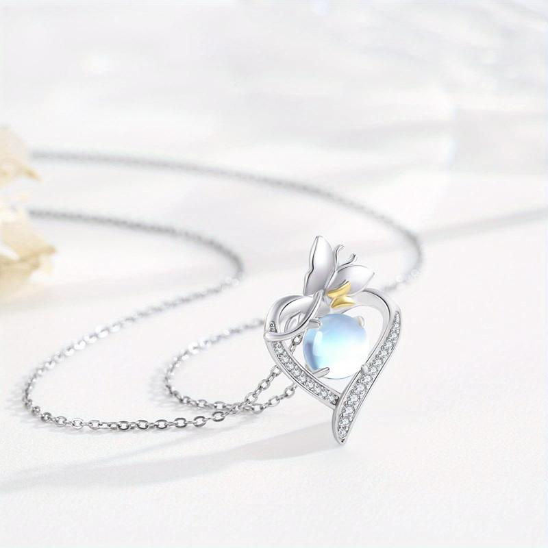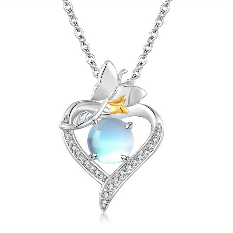 Adorn yourself with this exquisite Moonstone butterfly necklace. Crafted from 925 sterling silver, this necklace features a stunning Moonstone heart pendant. Perfect for women who appreciate elegant and unique jewelry pieces.