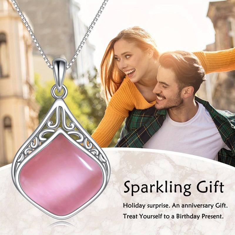 Elegant moonstone necklace with sterling silver filigree teardrop pendant, perfect for women and girls.