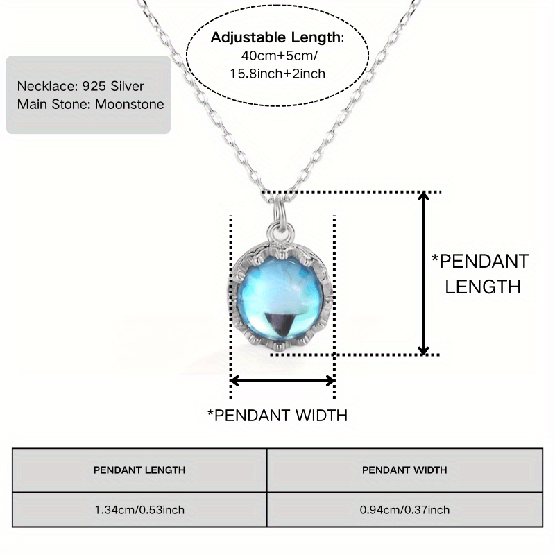 This Moonstone pendant necklace is a beautiful accessory that makes a unique birthday or anniversary gift. It is lightweight and perfect for adding a touch of elegance to any outfit.