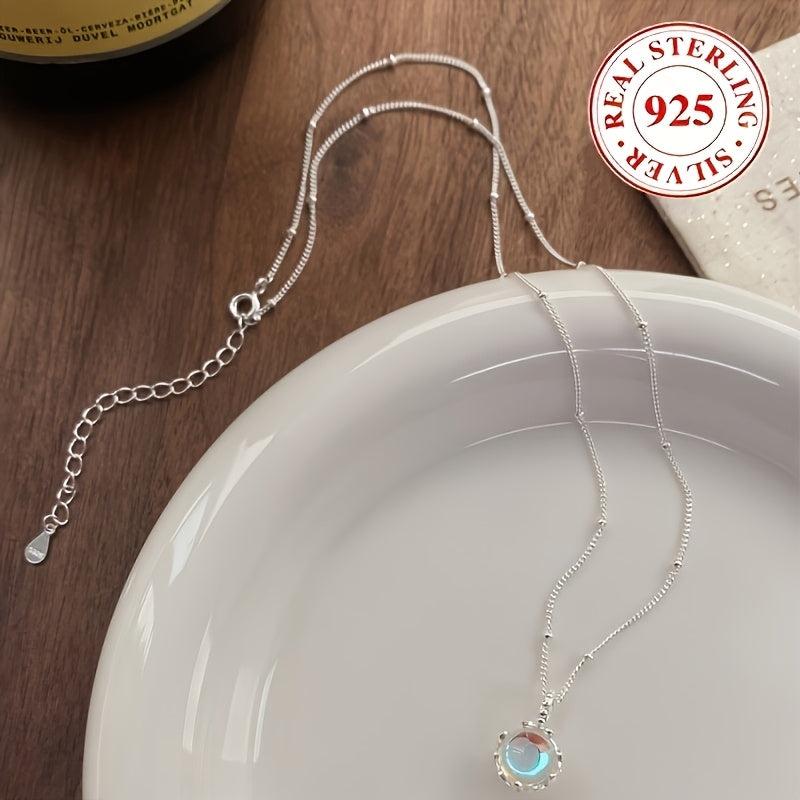 Elegant and eye-catching moonstone pendant necklace with cubic zirconia accents, perfect for daily wear or gifting. Features a rose golden latch chain and a round moonstone gemstone, ideal for those born in April.