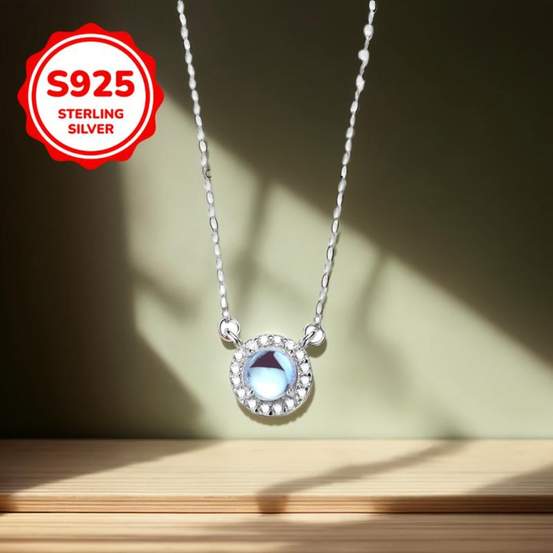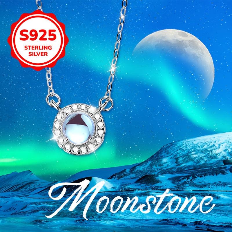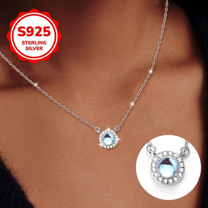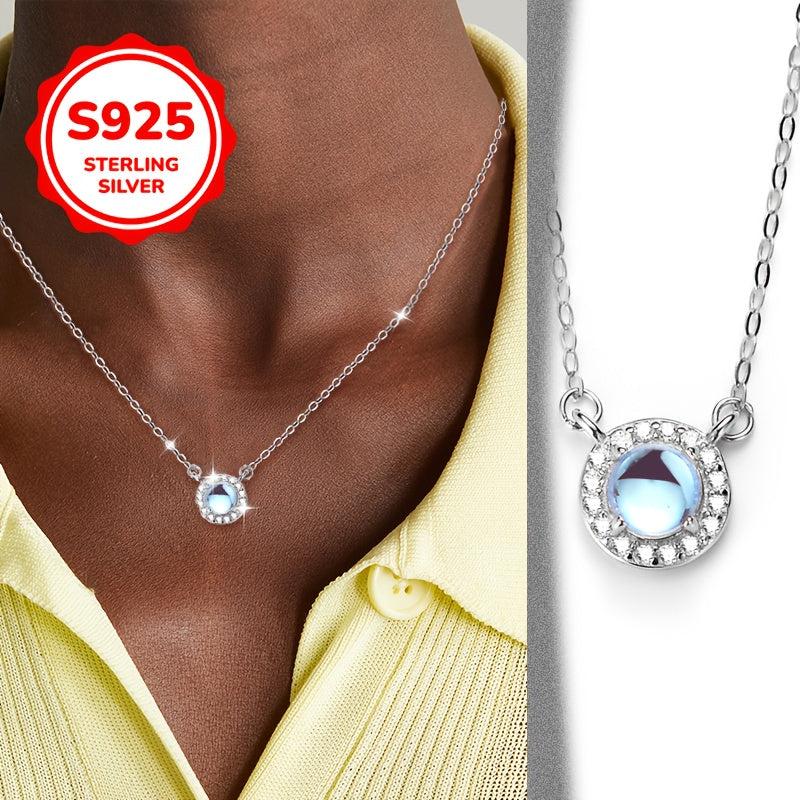 Elevate your style with this high-end pendant necklace featuring a moonstone center stone, cubic zirconia inlay, and a sleek collarbone chain. The classic design is fashionable and perfect for any occasion.