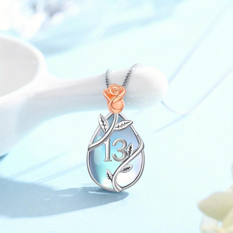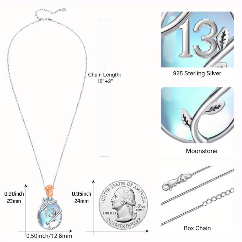 This stunning necklace features a moonstone rose flower pendant crafted in 925 sterling silver, making it a perfect gift for a 13 year old daughter. Ideal for Christmas, anniversary, or graduation.