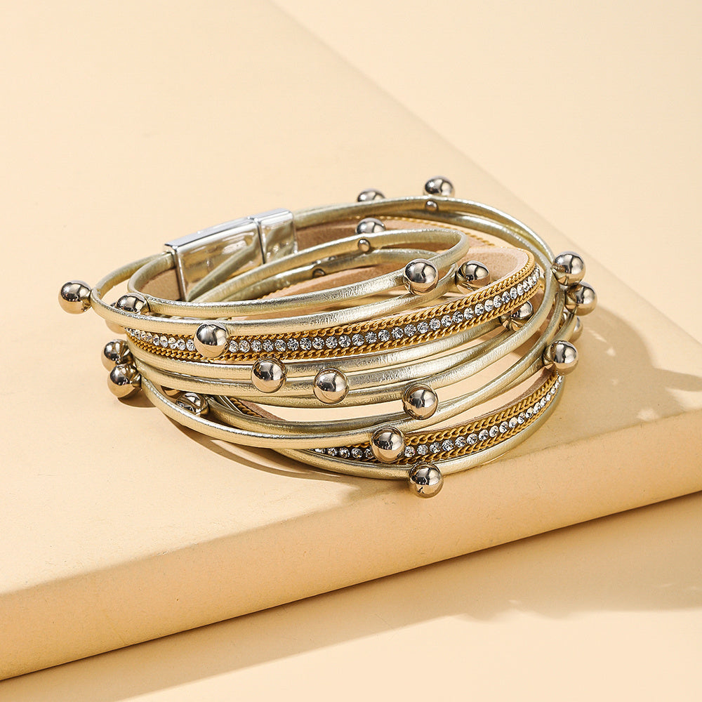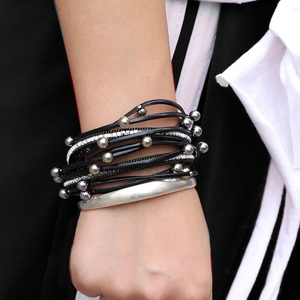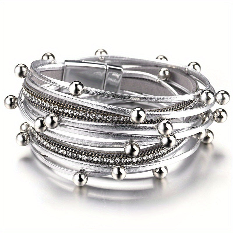 This stylish accessory features multilayer design with rhinestones and a magnetic buckle, perfect for adding a touch of elegance to your outfit.