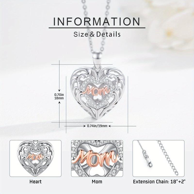 This beautiful Mum necklace is made of 925 sterling silver, featuring a heart-shaped pendant. It's the perfect gift for your mom on her birthday or any special occasion.