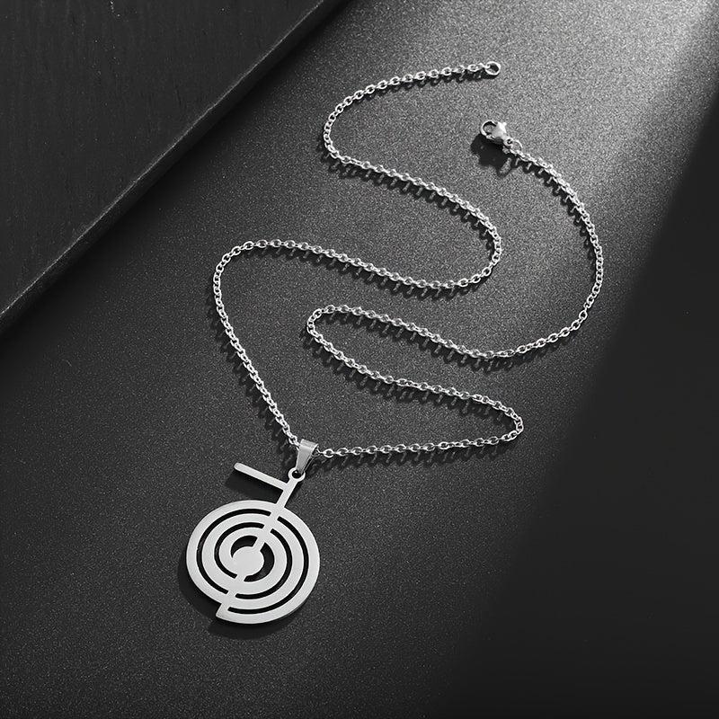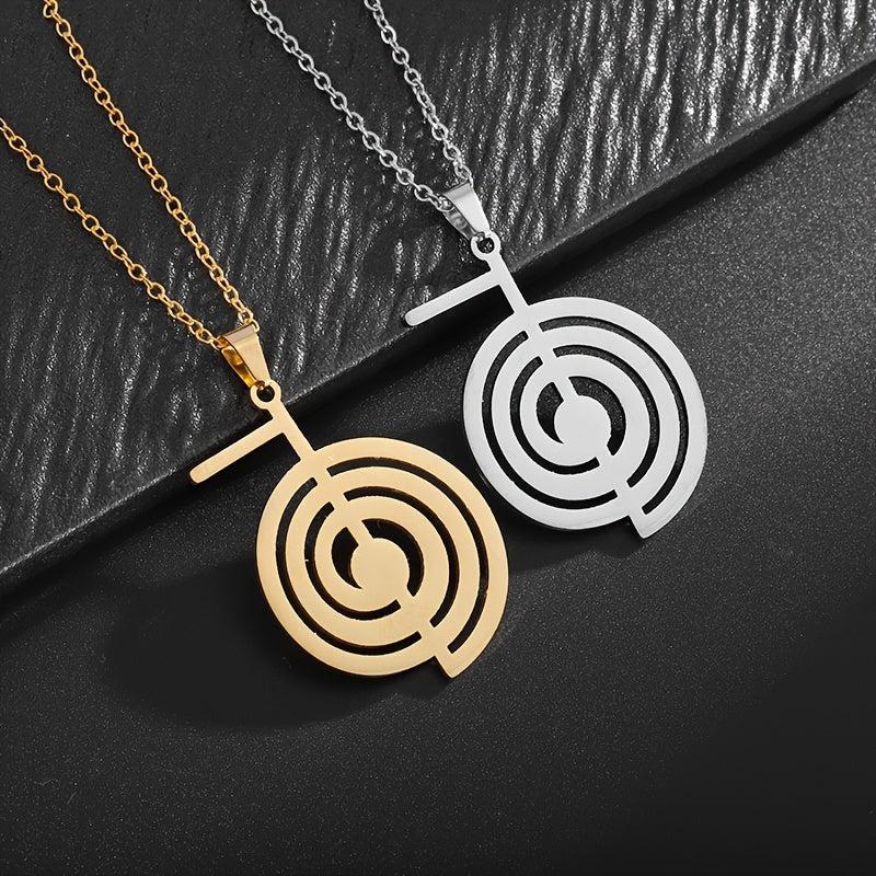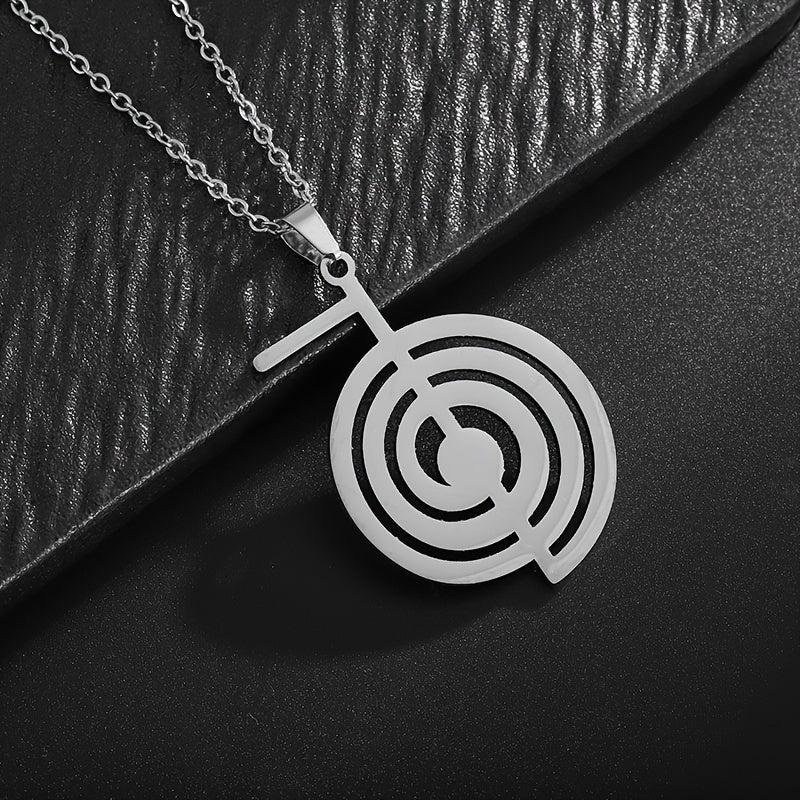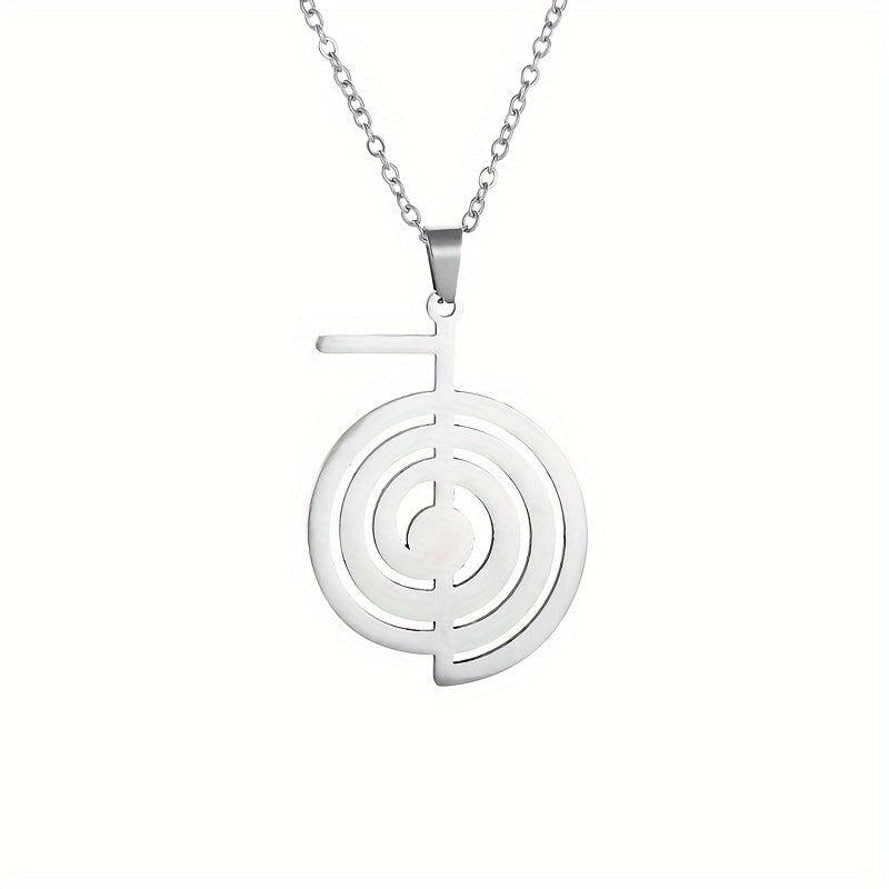 This unique stainless steel pendant necklace features an infinite geometric spiral symbol design, perfect for adding a touch of creativity to any casual outfit.