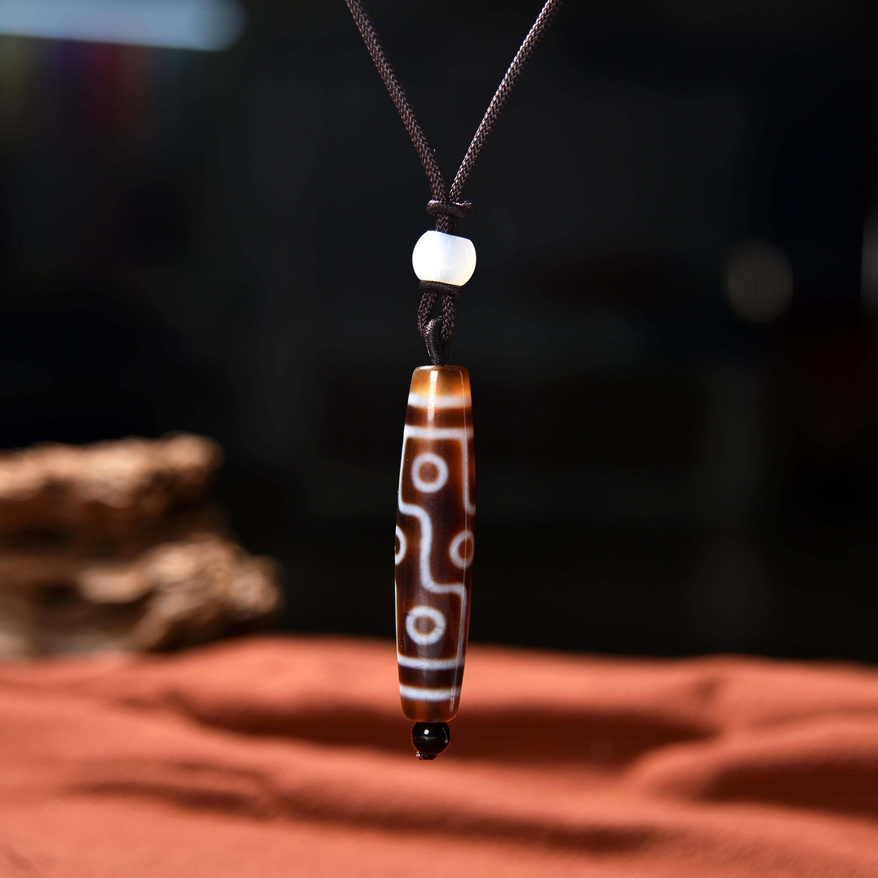 This pendant features a natural crystal nine eye Dzi bead in a bohemian retro style design, suitable for men and women.