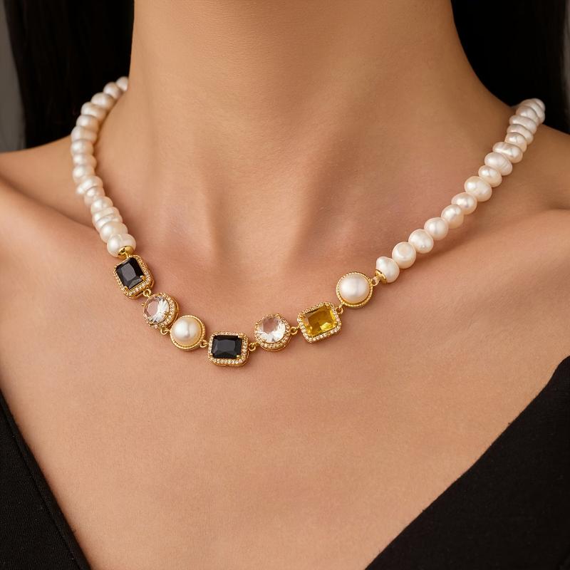 Elegant necklace featuring irregular shaped freshwater pearls suitable for daily wear or special occasions.