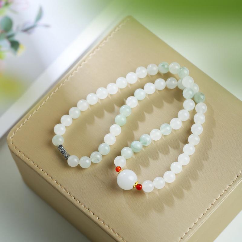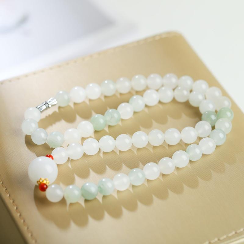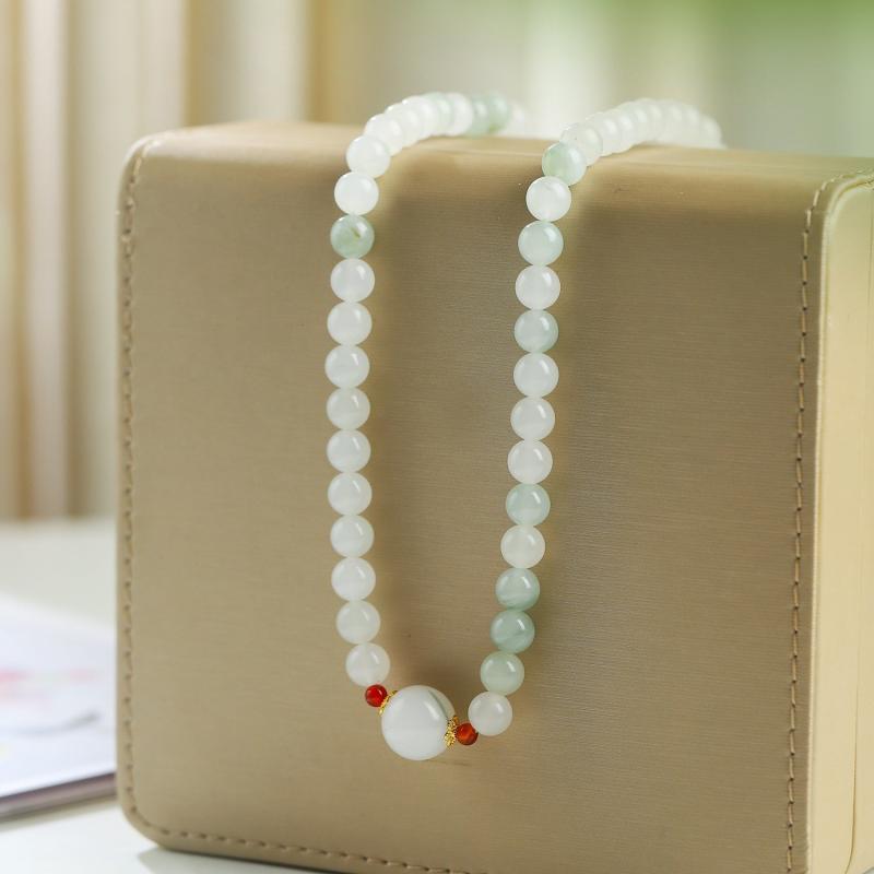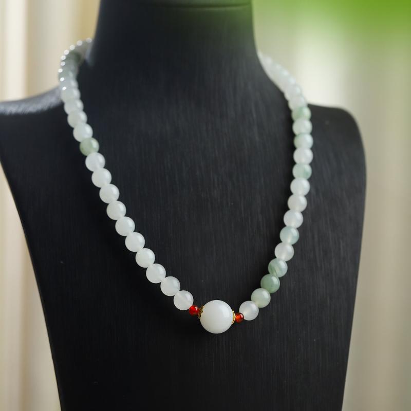 Elevate your style with this natural stone necklace featuring transfer beads. Perfect for both casual and formal outfits.