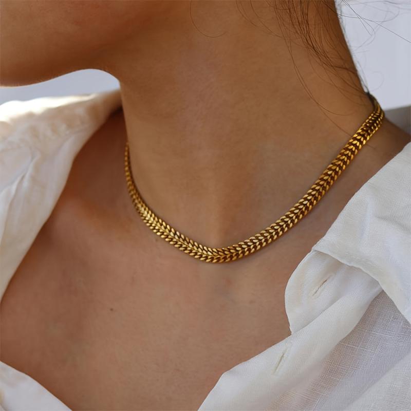 This Nooxian Women's necklace is 18K golden plated, made of stainless steel. It features a chunky chain design that is perfect for everyday wear or vacation jewelry. The openwork details add a touch of elegance.