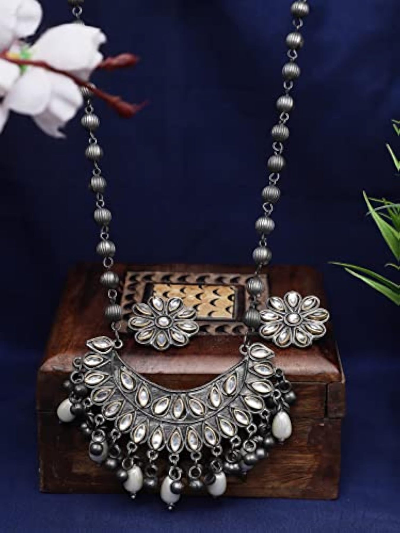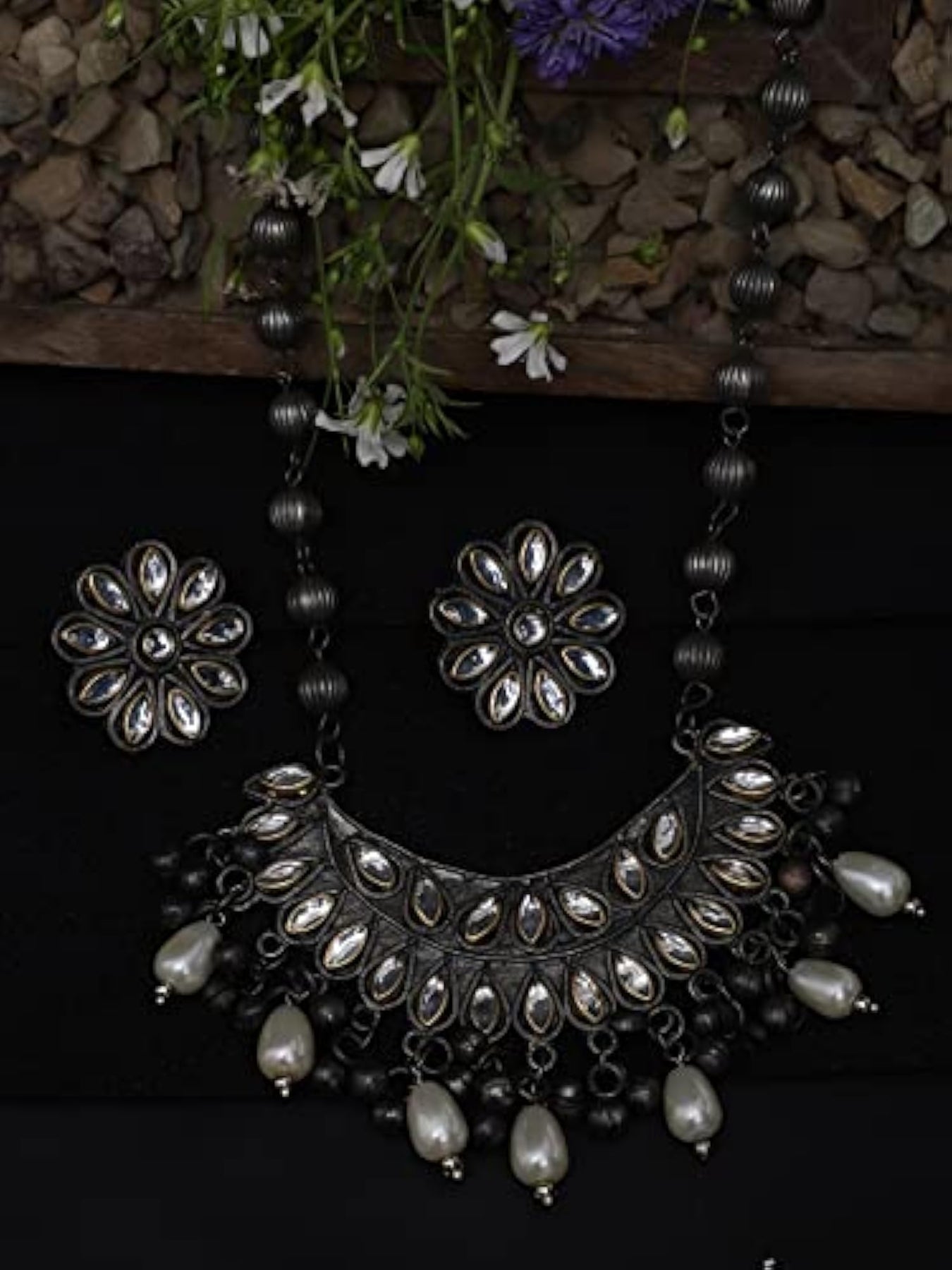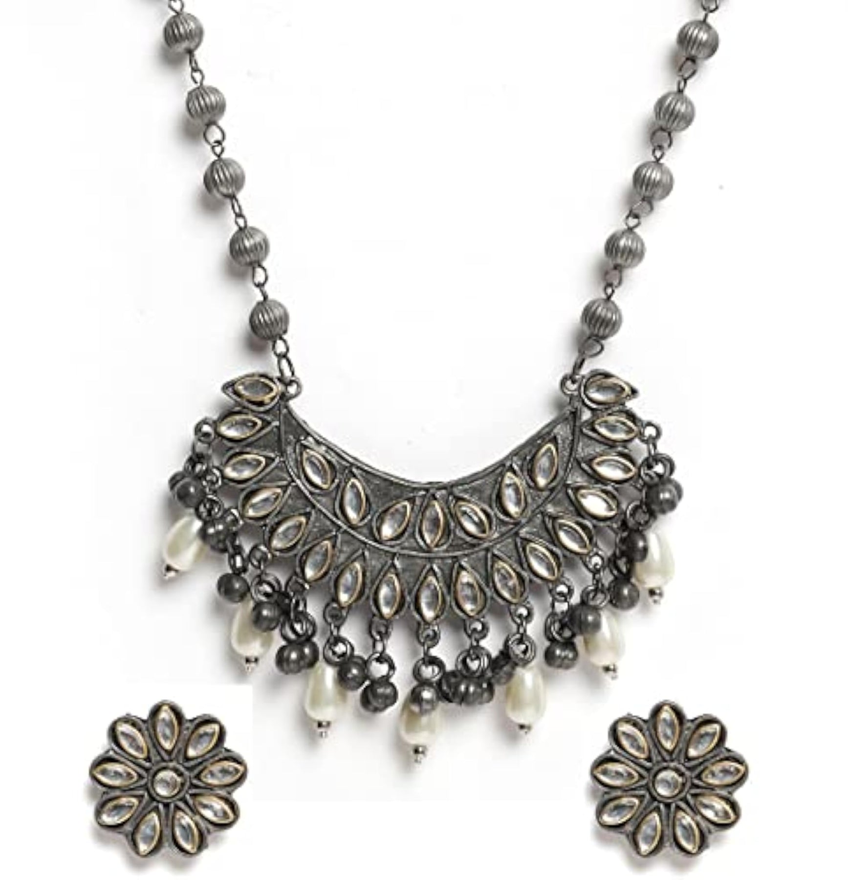 Elegant oxidised necklace set with matching earrings, perfect for any occasion.