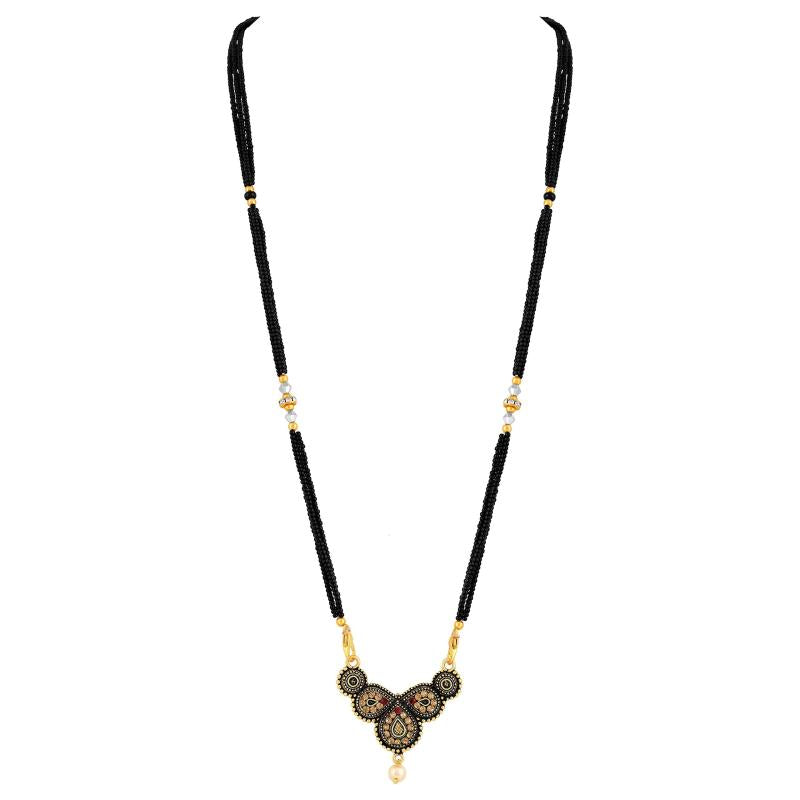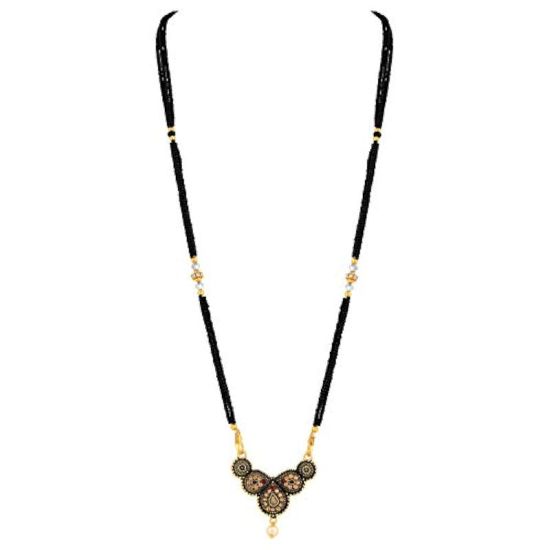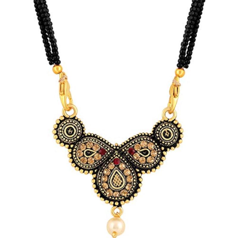 Elegant opera style mangalsutra with traditional oxidised plating and Lct stones.