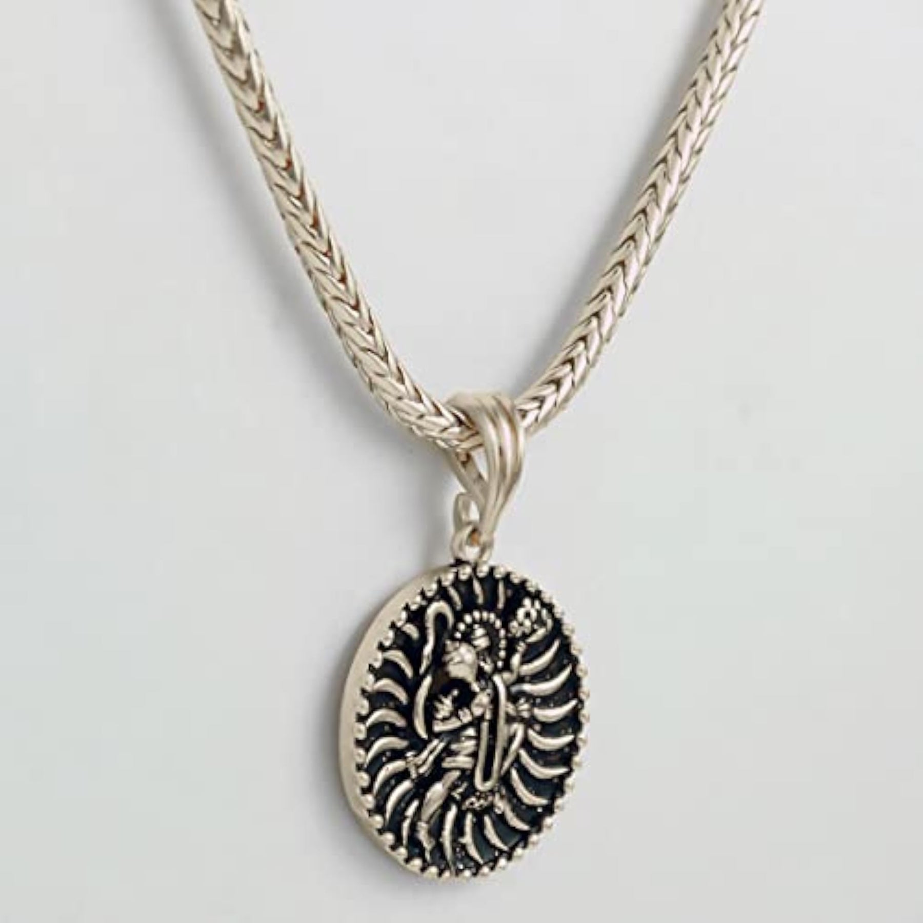 Elegant and stylish neck chain for women featuring an oxidised silver 3D pendant design. Perfect for adding a touch of sophistication to any outfit.