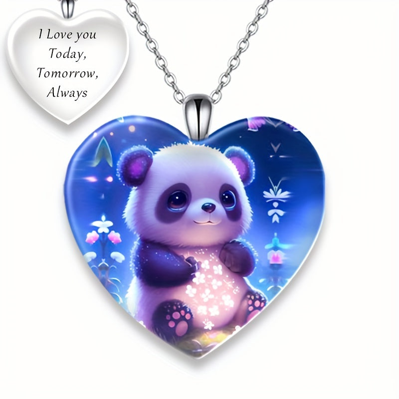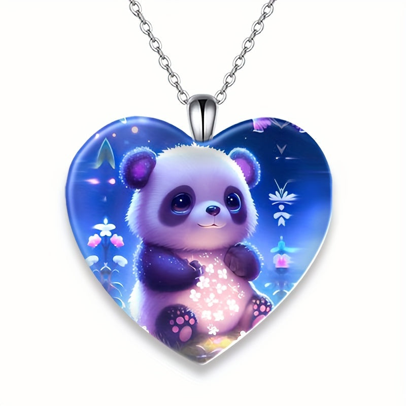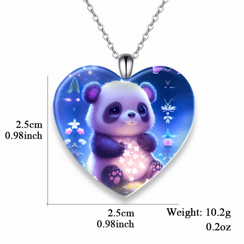 Adorn yourself with this exquisite panda pattern heart shaped crystal pendant necklace. Perfect for Christmas, banquets, or as a gift for a loved one.