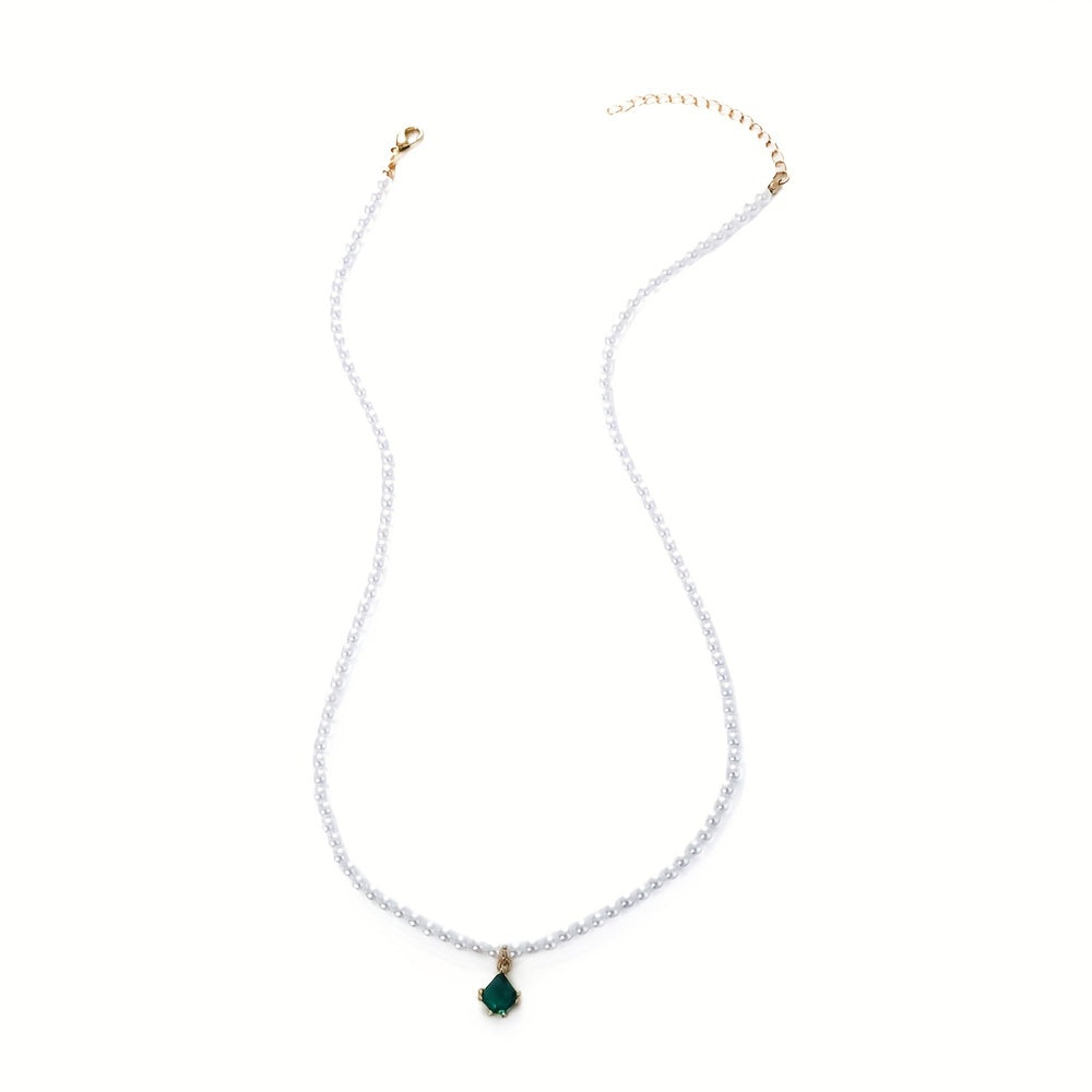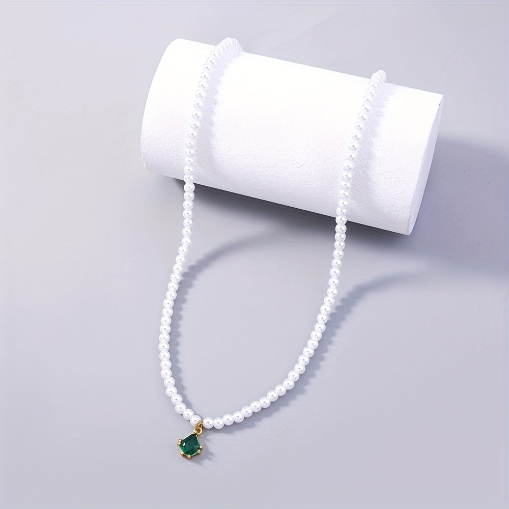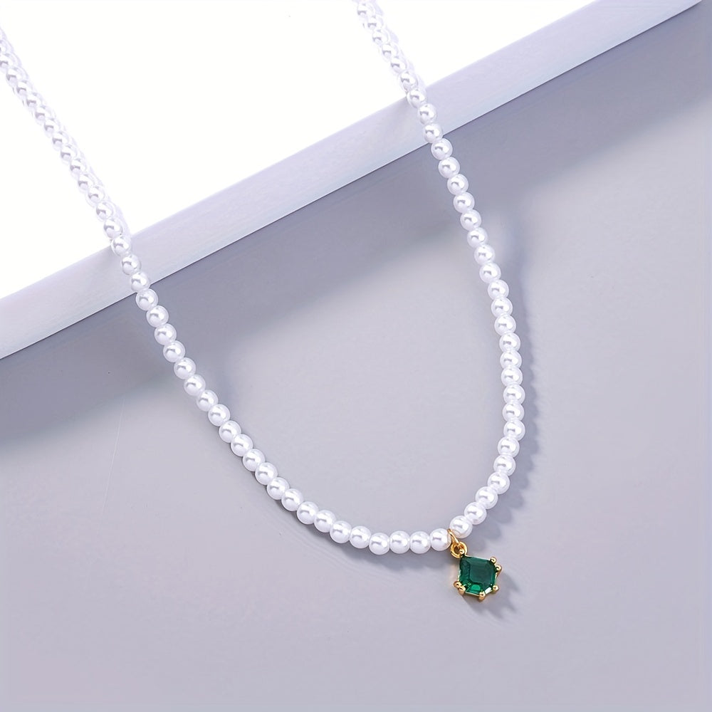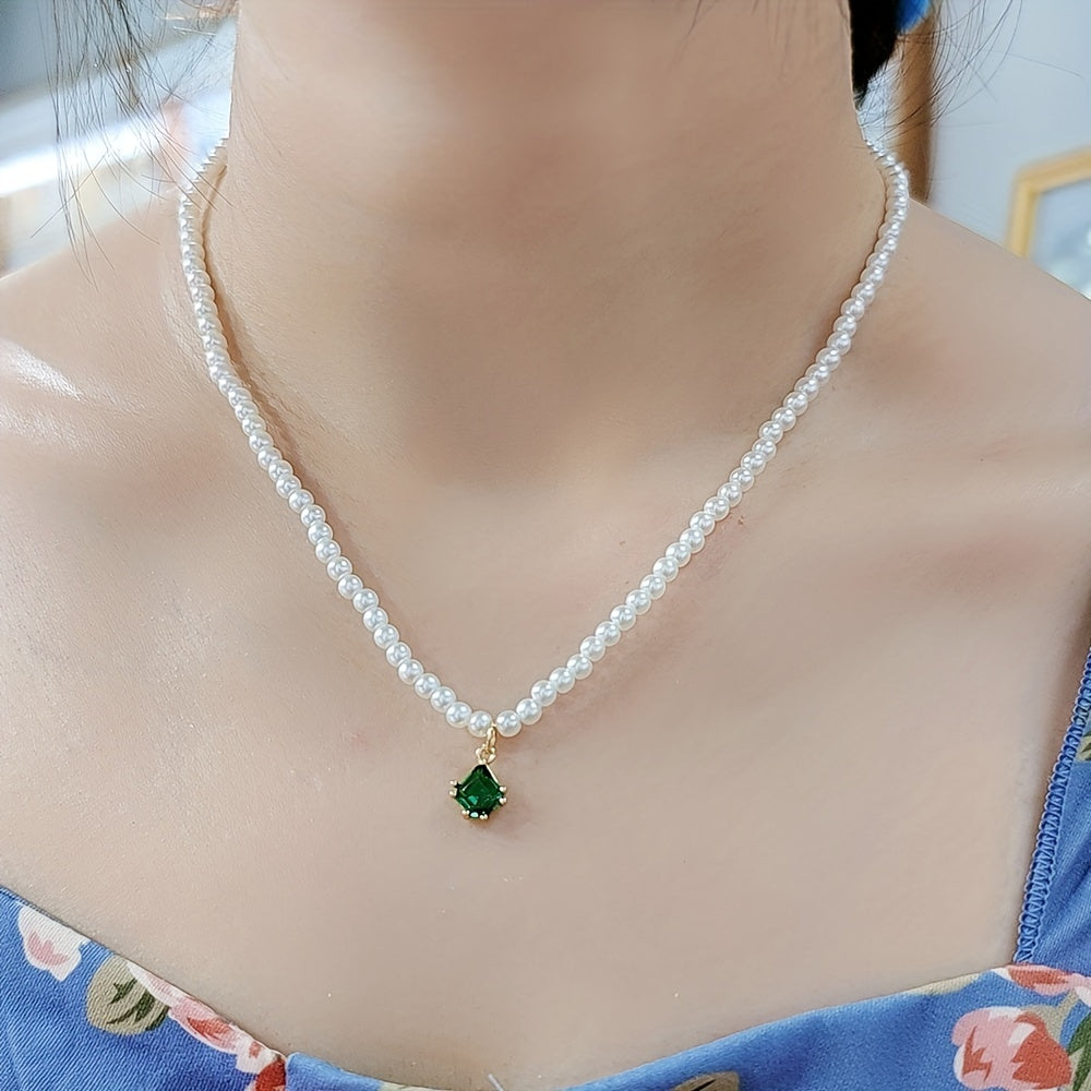 Elevate your look with this stunning necklace featuring a natural pearl with green shine zircon pendant. The baroque style adds a touch of elegance to any outfit.