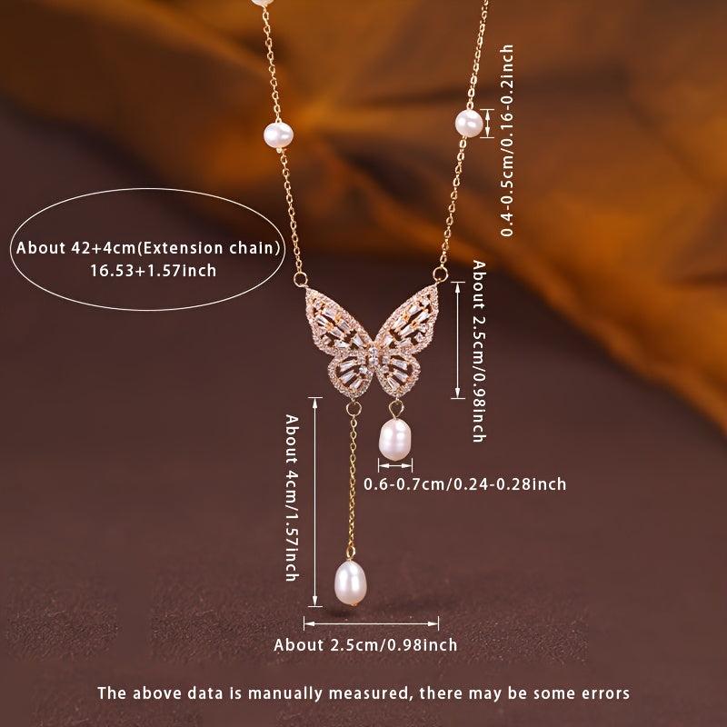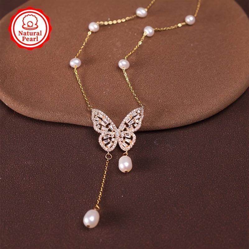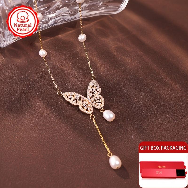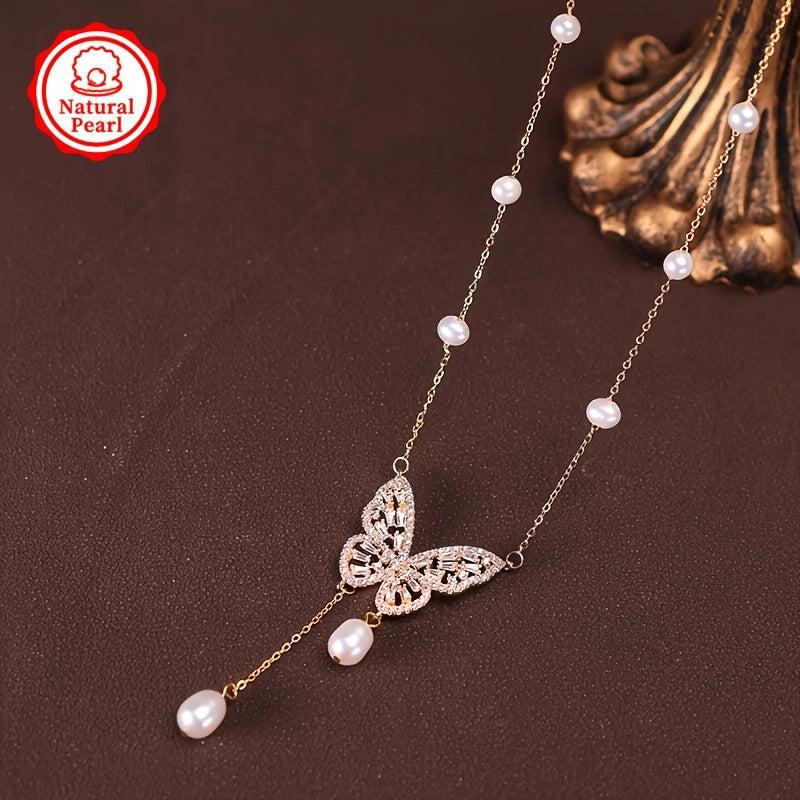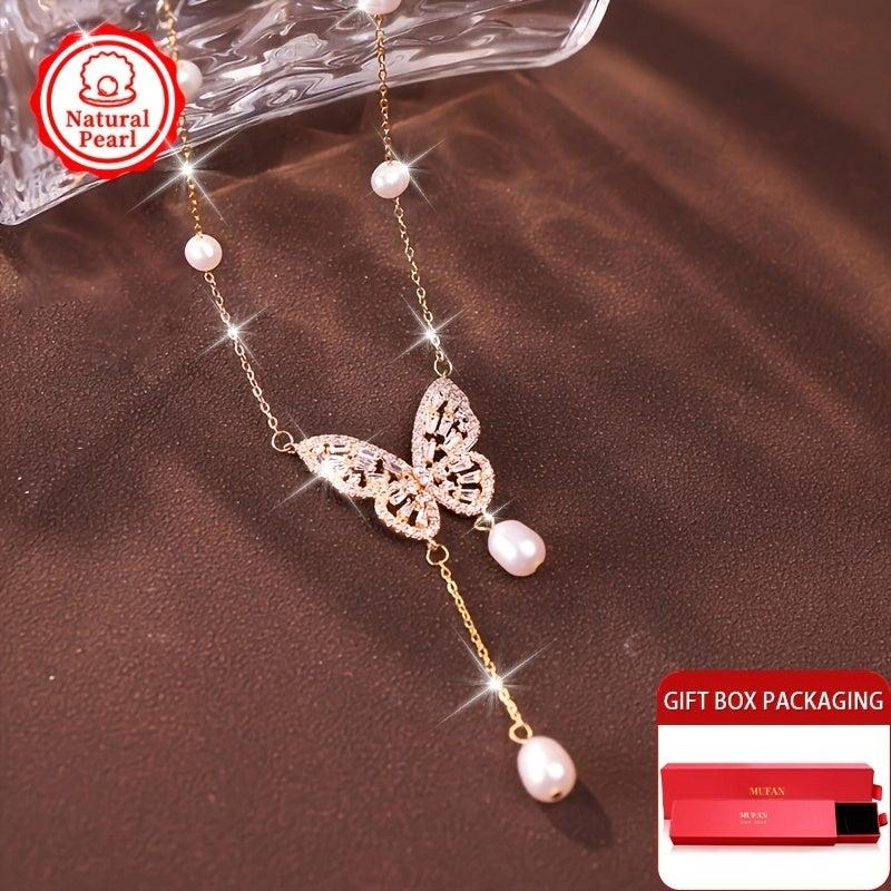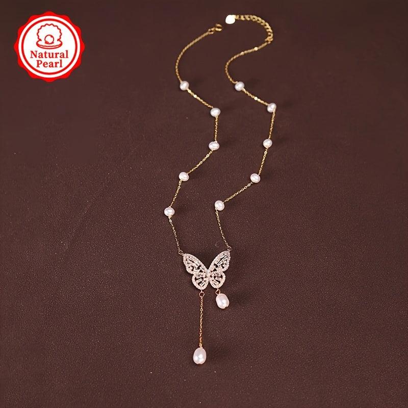 This stunning necklace features a 4-7mm natural freshwater pearl pendant in a smart butterfly design. Each pearl is unique with varying shapes and colors, making it a perfect gift for any occasion.