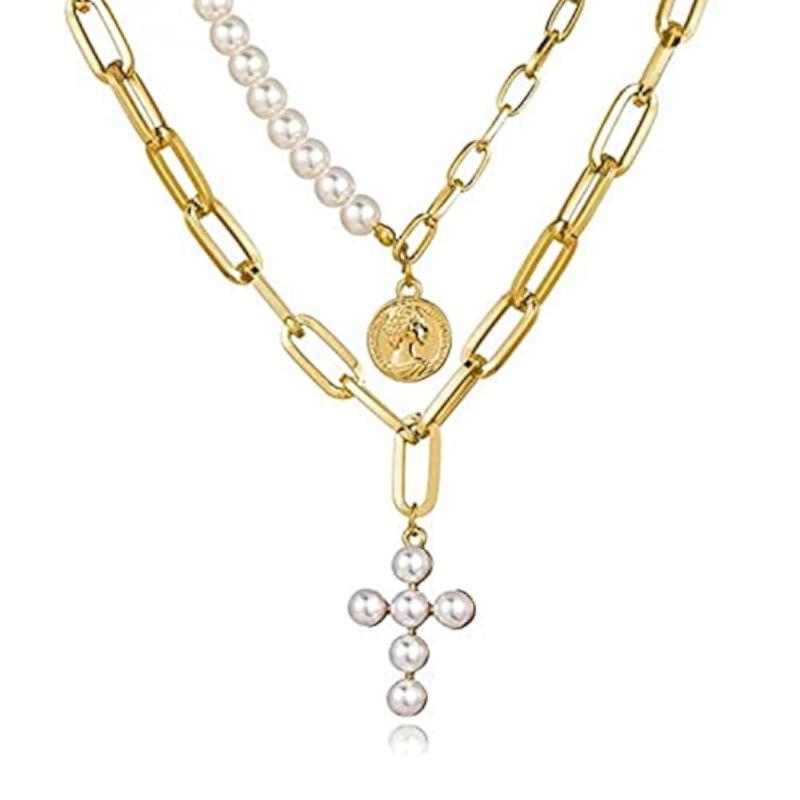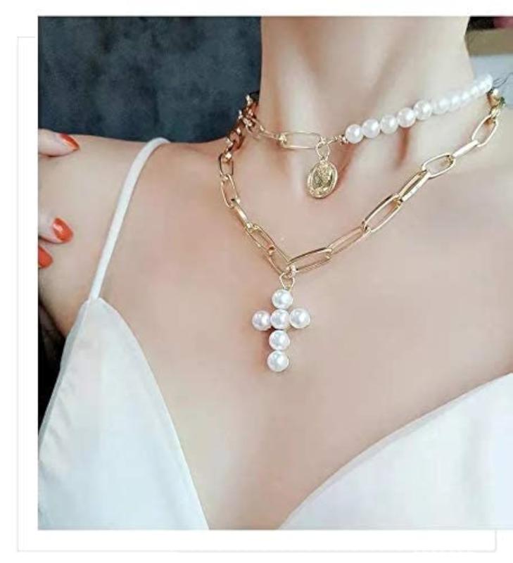 Elegant jewellery set featuring a stunning pearl studded necklace and matching earrings. Perfect for girls and women for any occasion.